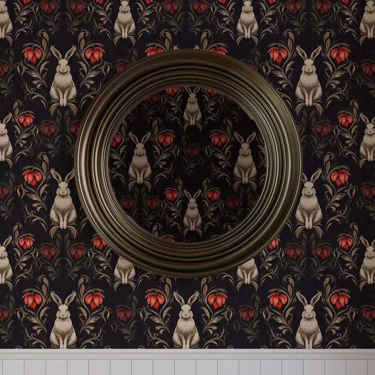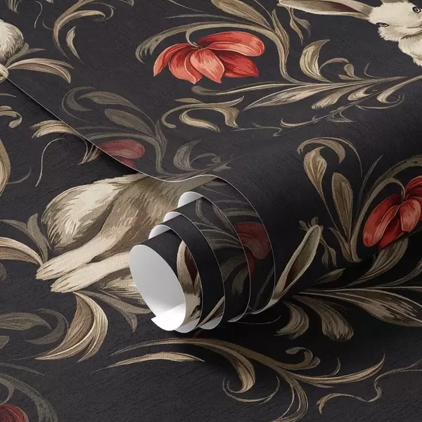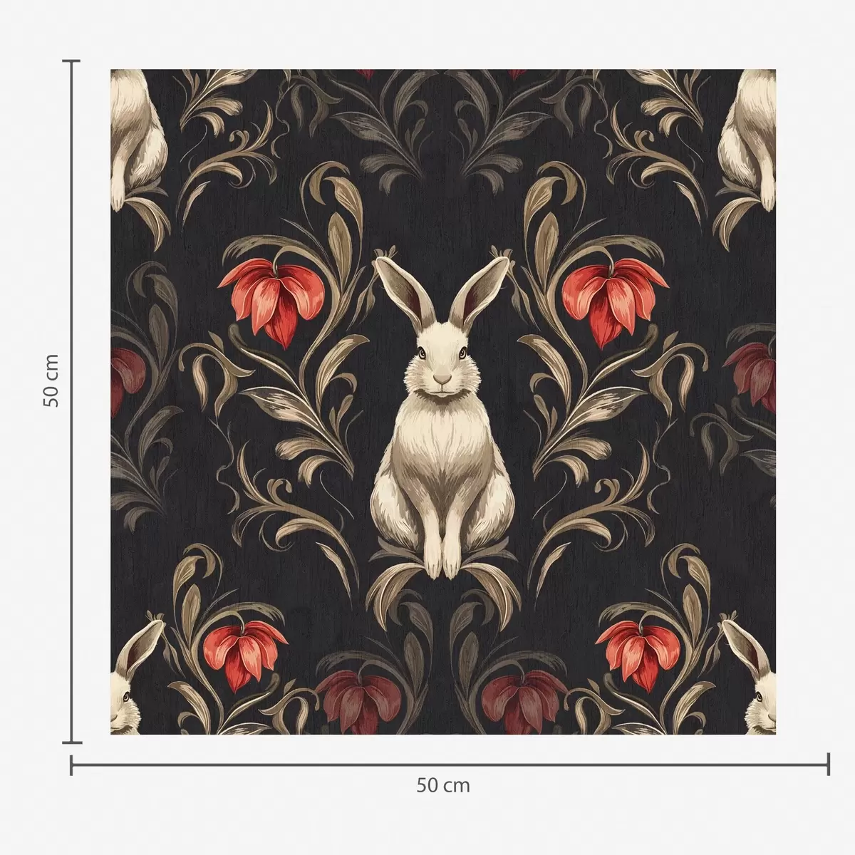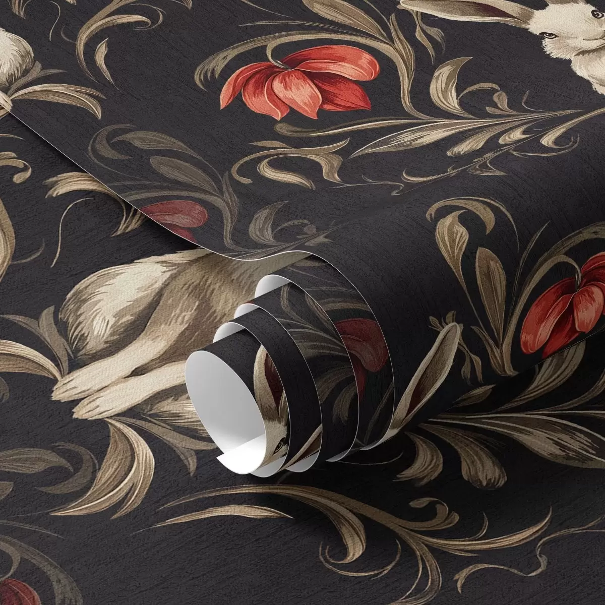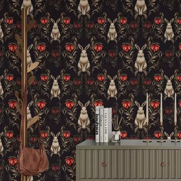 Tapeta Zajíc a červené květy na tmavém pozadí Nr. a00102
