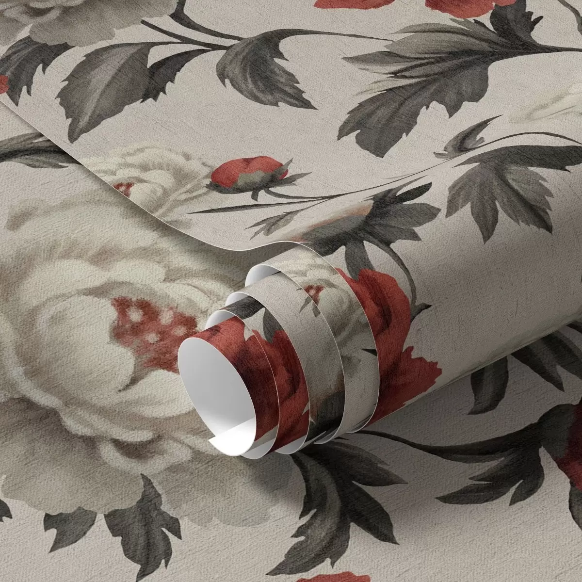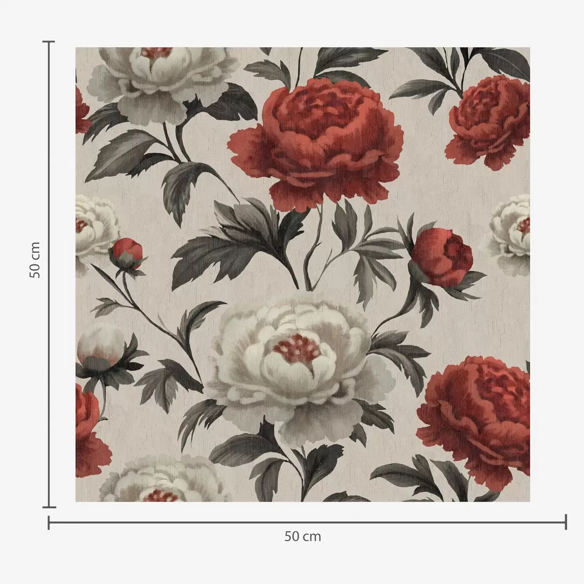 Tapeta Pivoňky v retro stylu na béžovém pozadí Nr. a00107