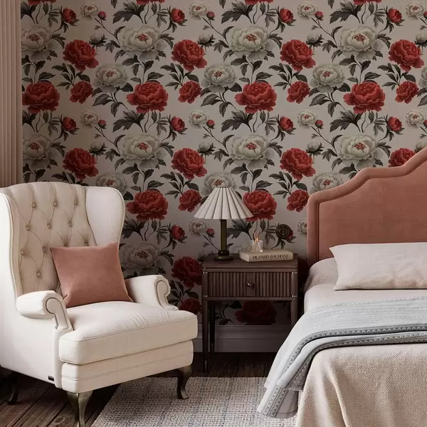 Tapeta Pivoňky v retro stylu na béžovém pozadí Nr. a00107