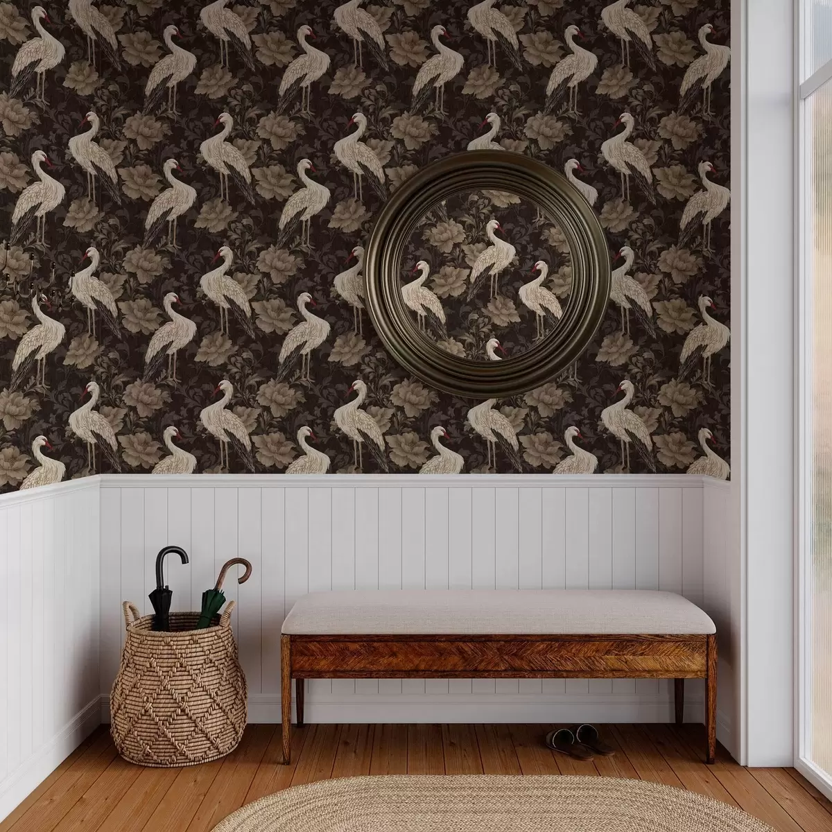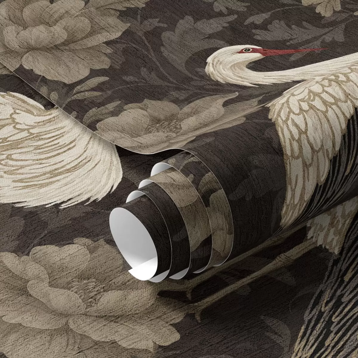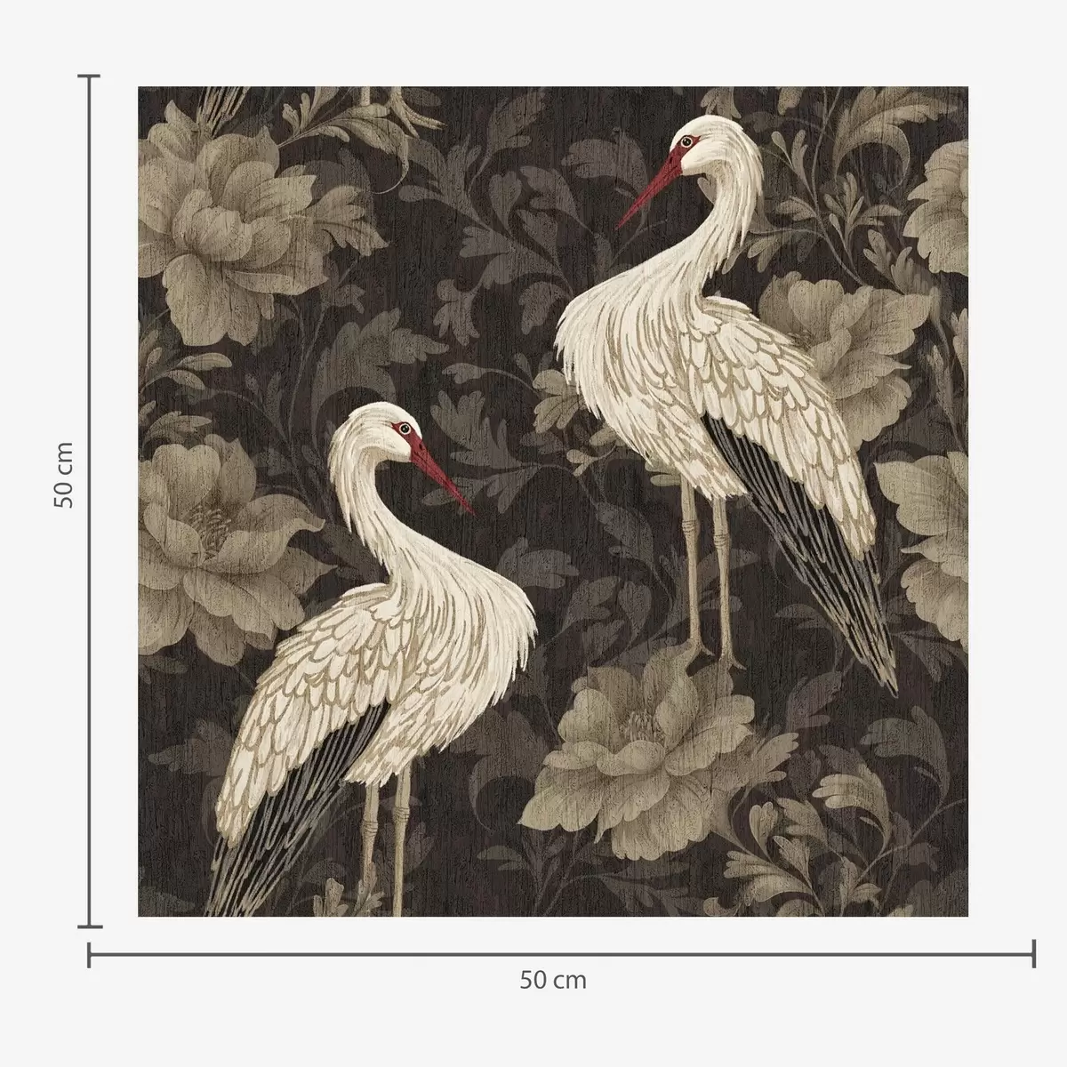 Tapeta Jeřábi mezi velkými květy v klasické pastelové paletě Nr. a00108