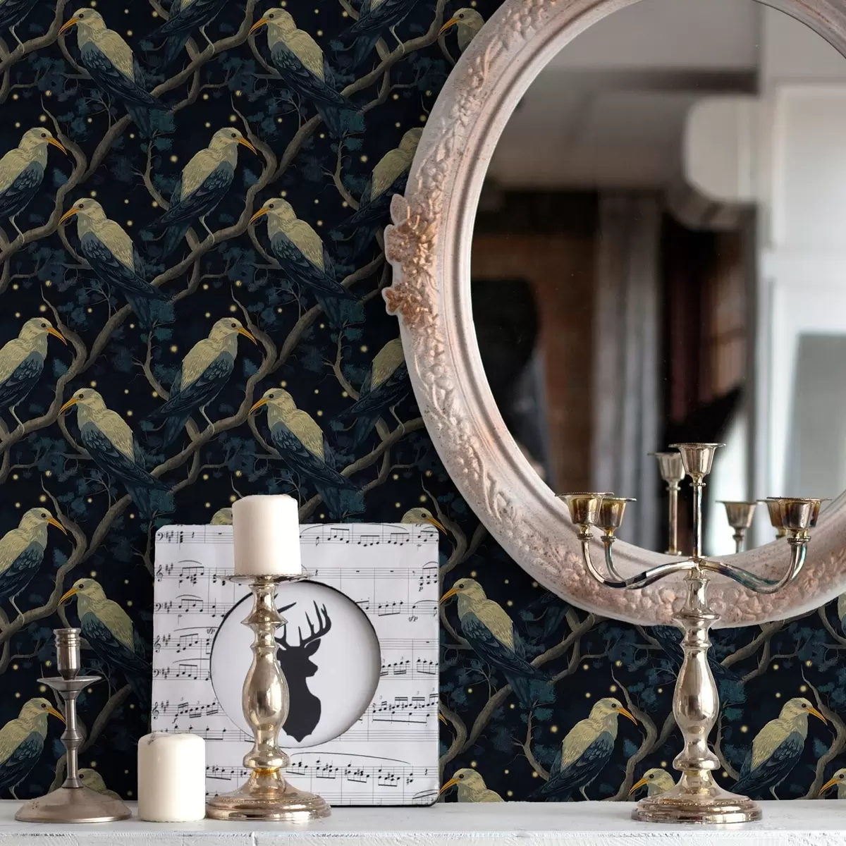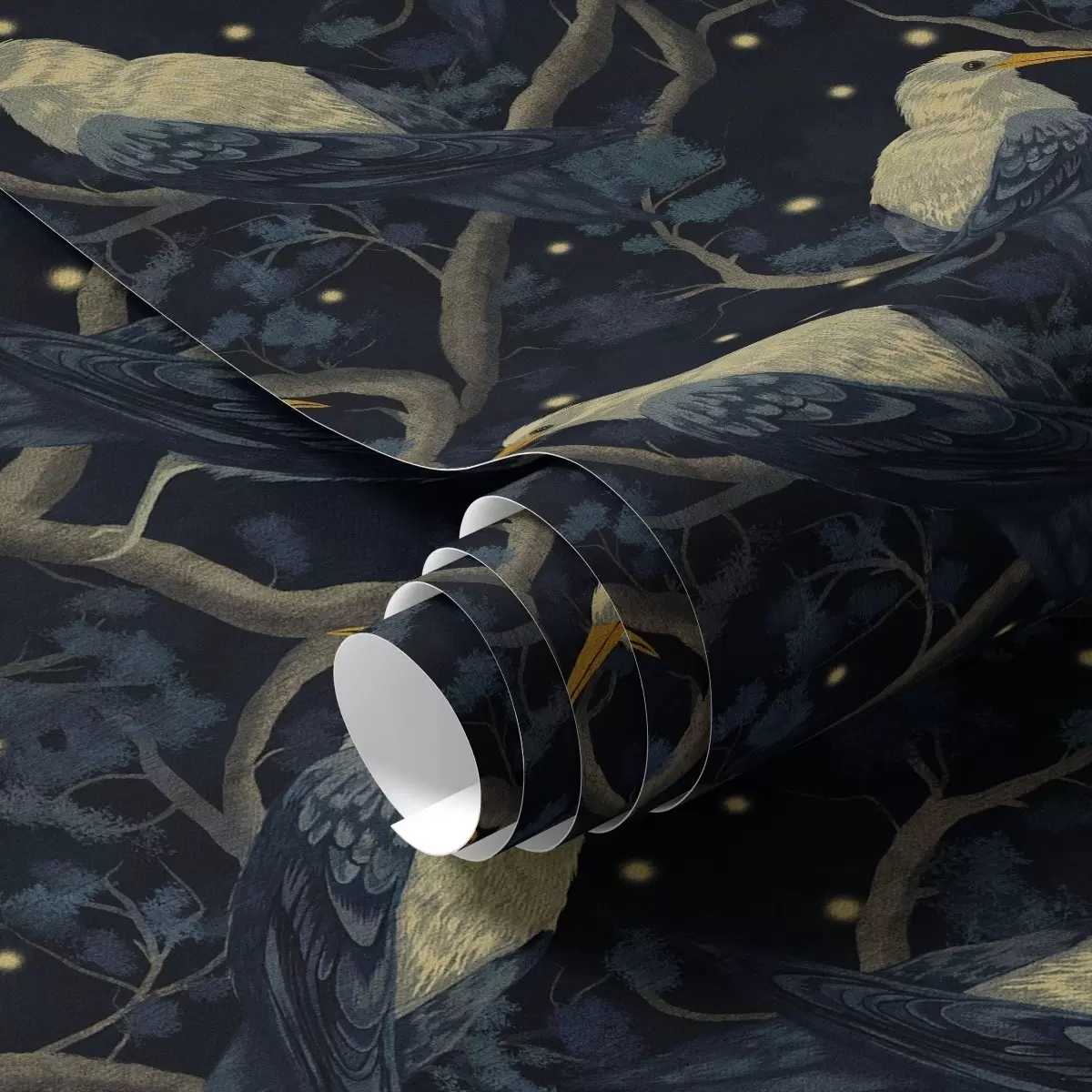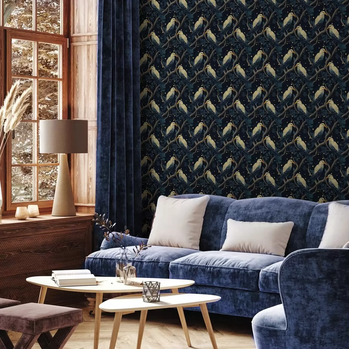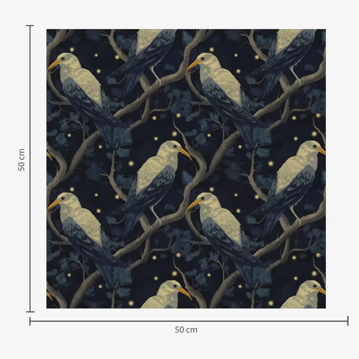 Tapeta Noční ptáci na větvích a hvězdy na tmavě modrém pozadí Nr. a00109v1