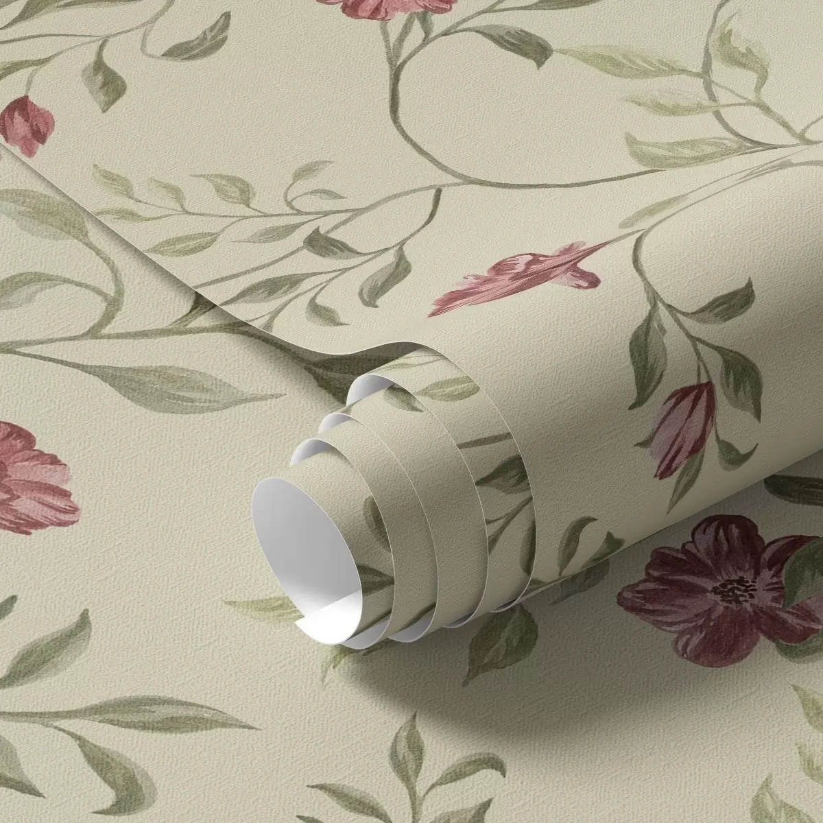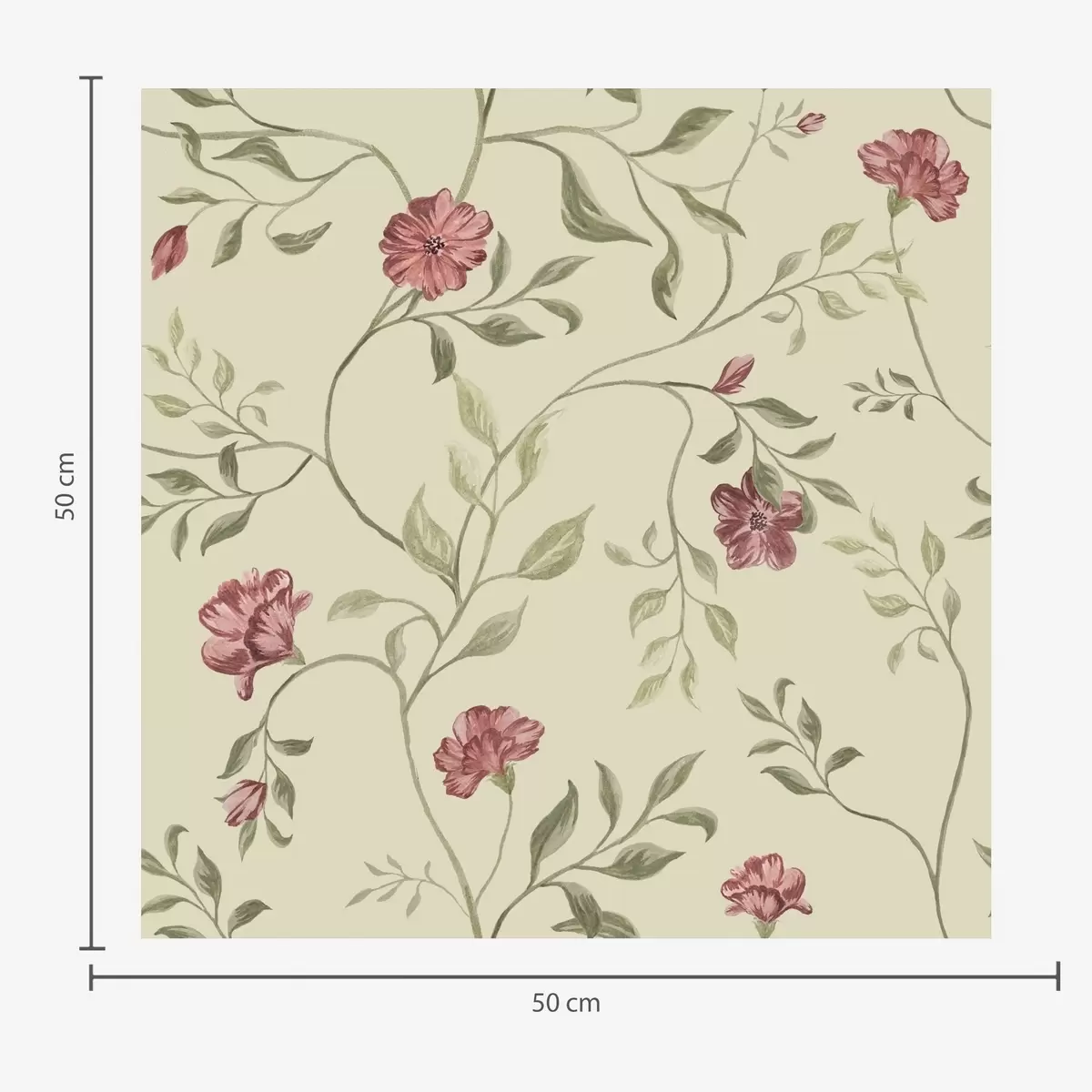Tapeta Květy a červená poupata na světlém pozadí Nr. a00114