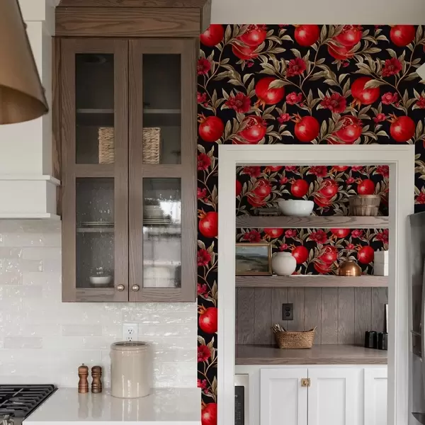Tapeta Granátová jablka a květiny na tmavém pozadí ve středomořském stylu Nr. a00115