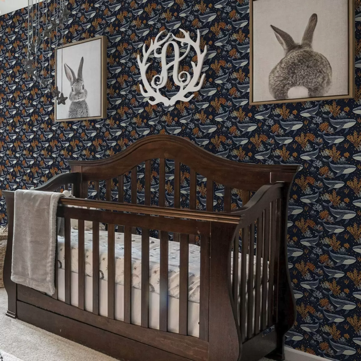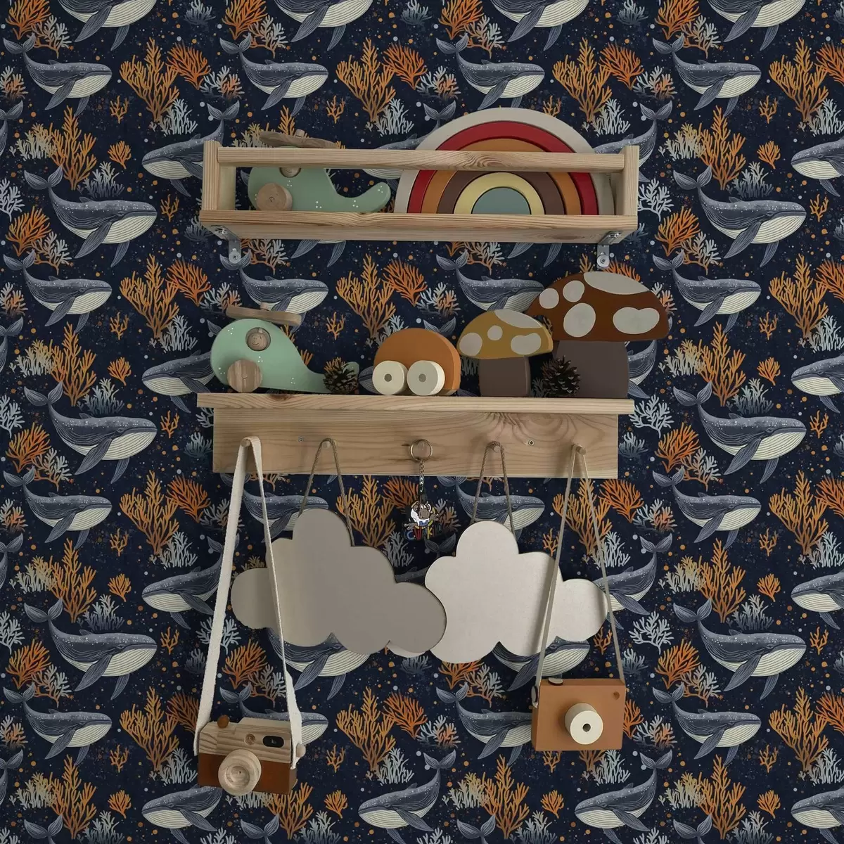 Tapeta Mořské velryby a korály na tmavém pozadí Nr. a00116