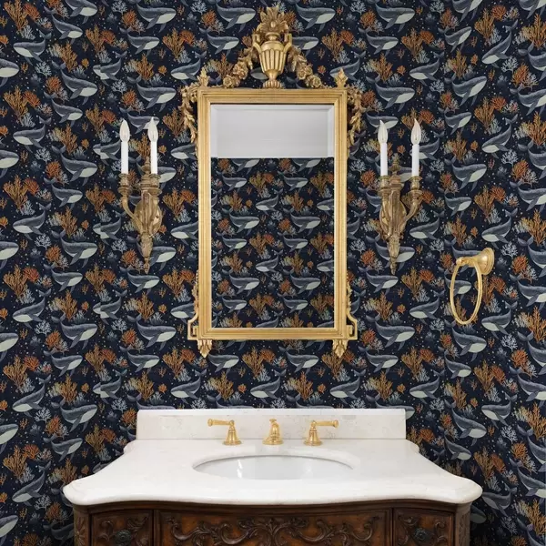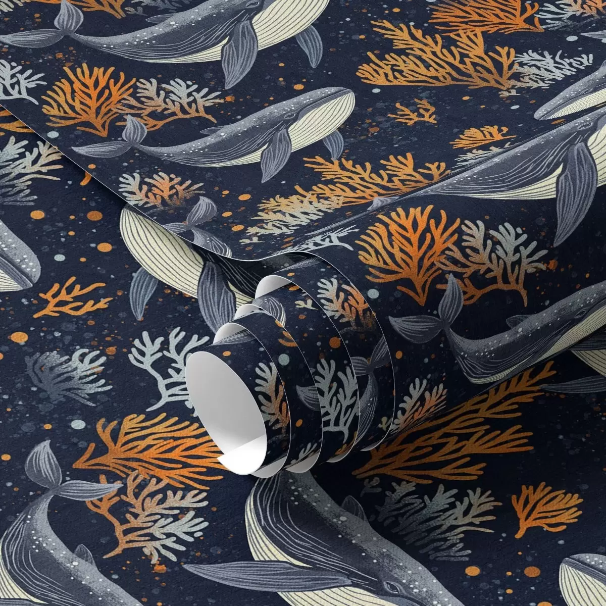 Tapeta Mořské velryby a korály na tmavém pozadí Nr. a00116