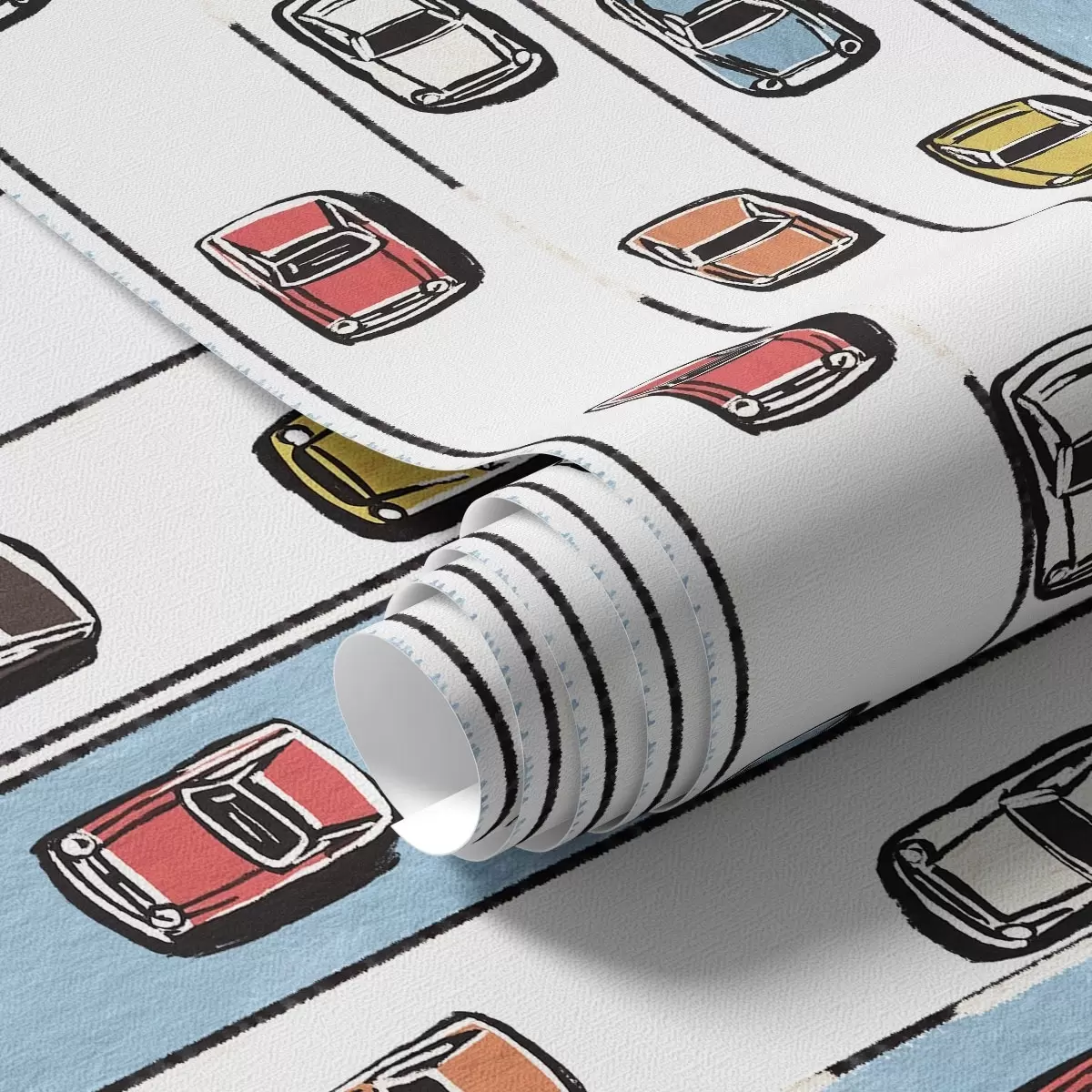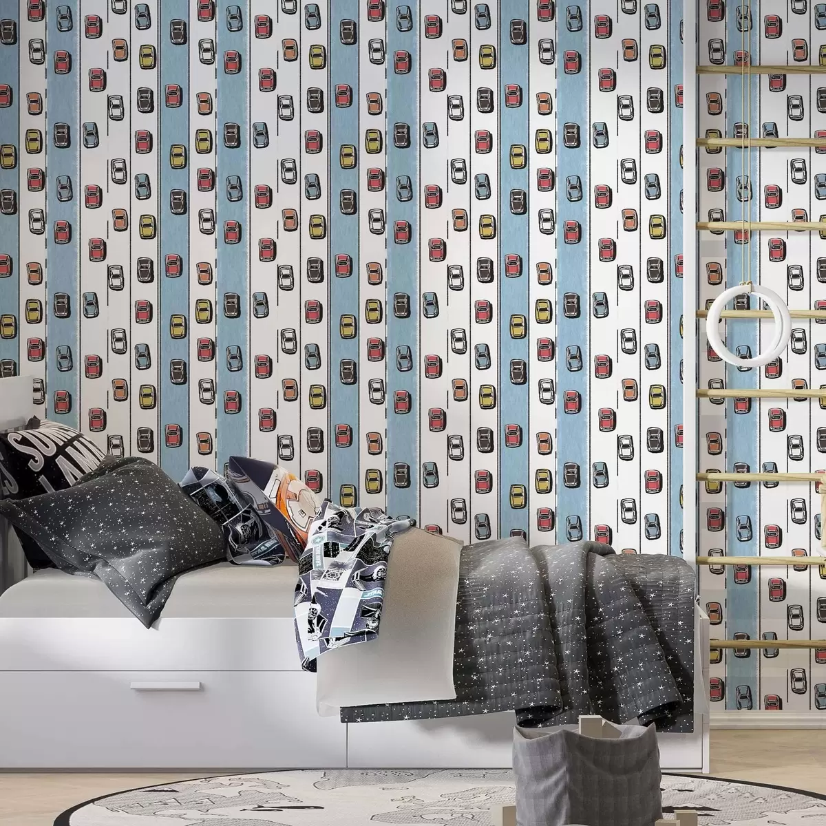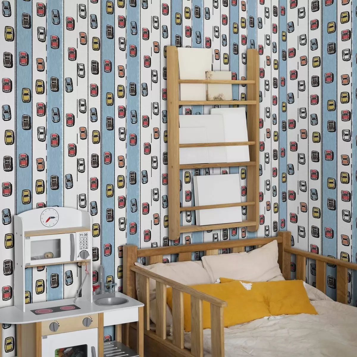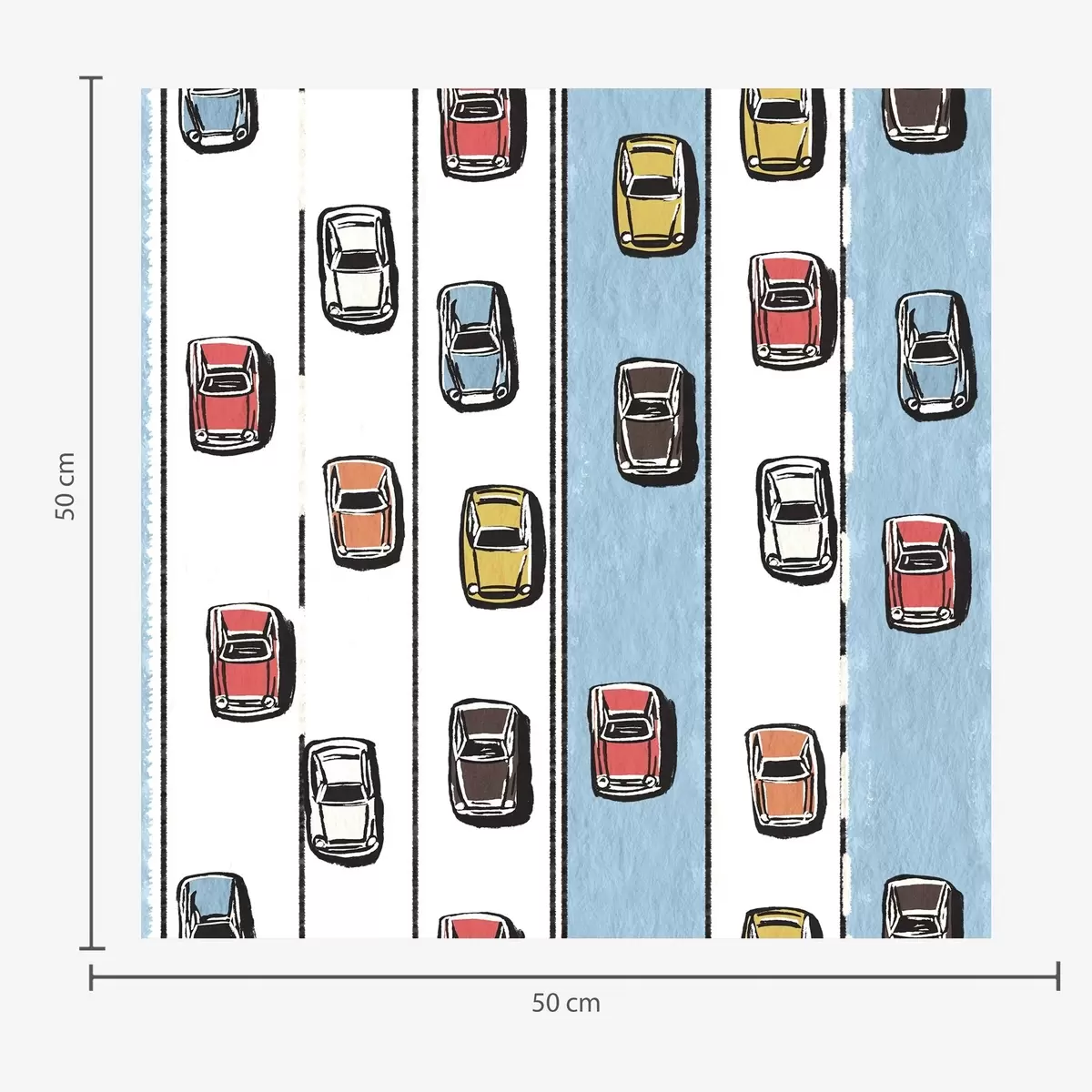 Tapeta Retro auto na bílo-modré silnici ve stylu 60. let Nr. a00118v2