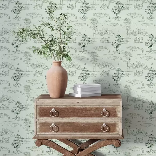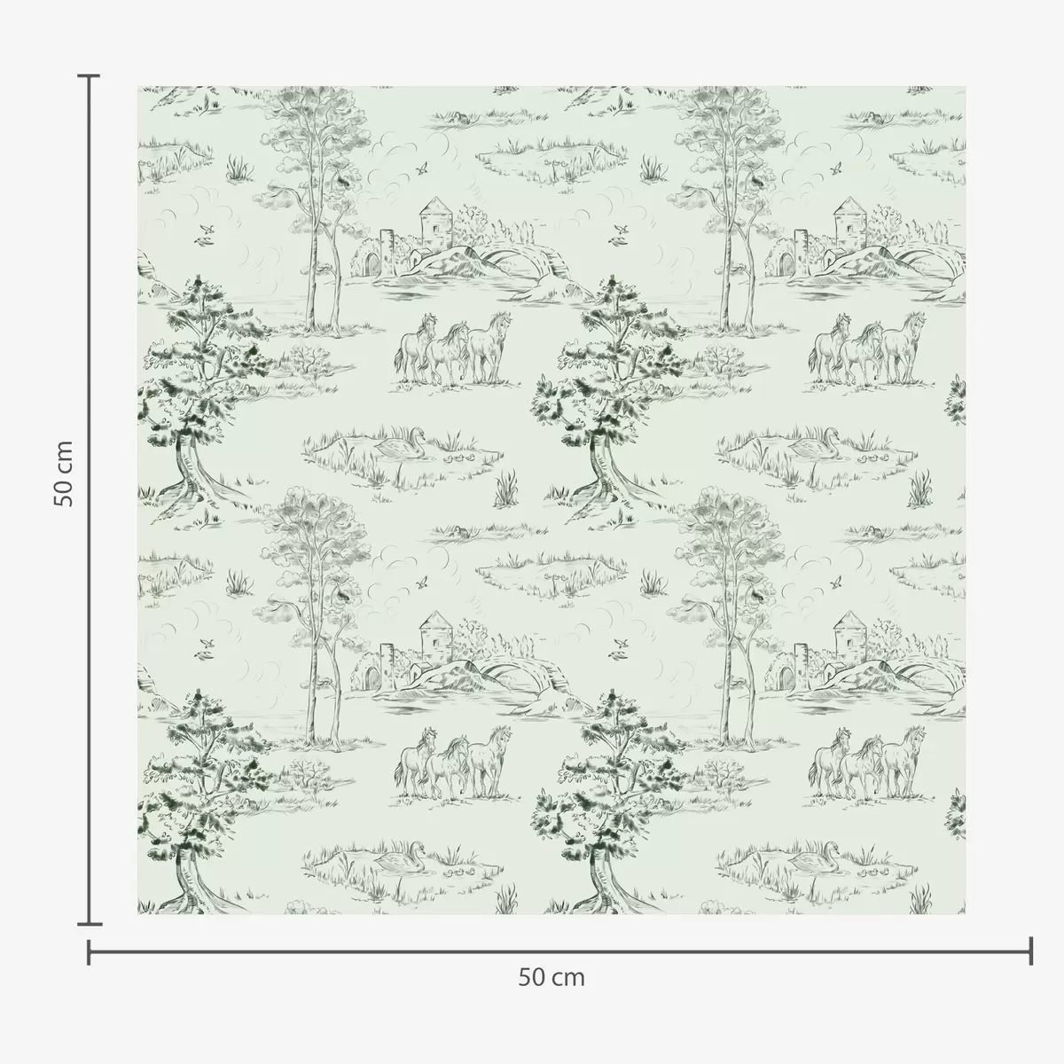 Tapeta Scéna s koňmi, stromy a hradem na zeleném pozadí Nr. a00133v1