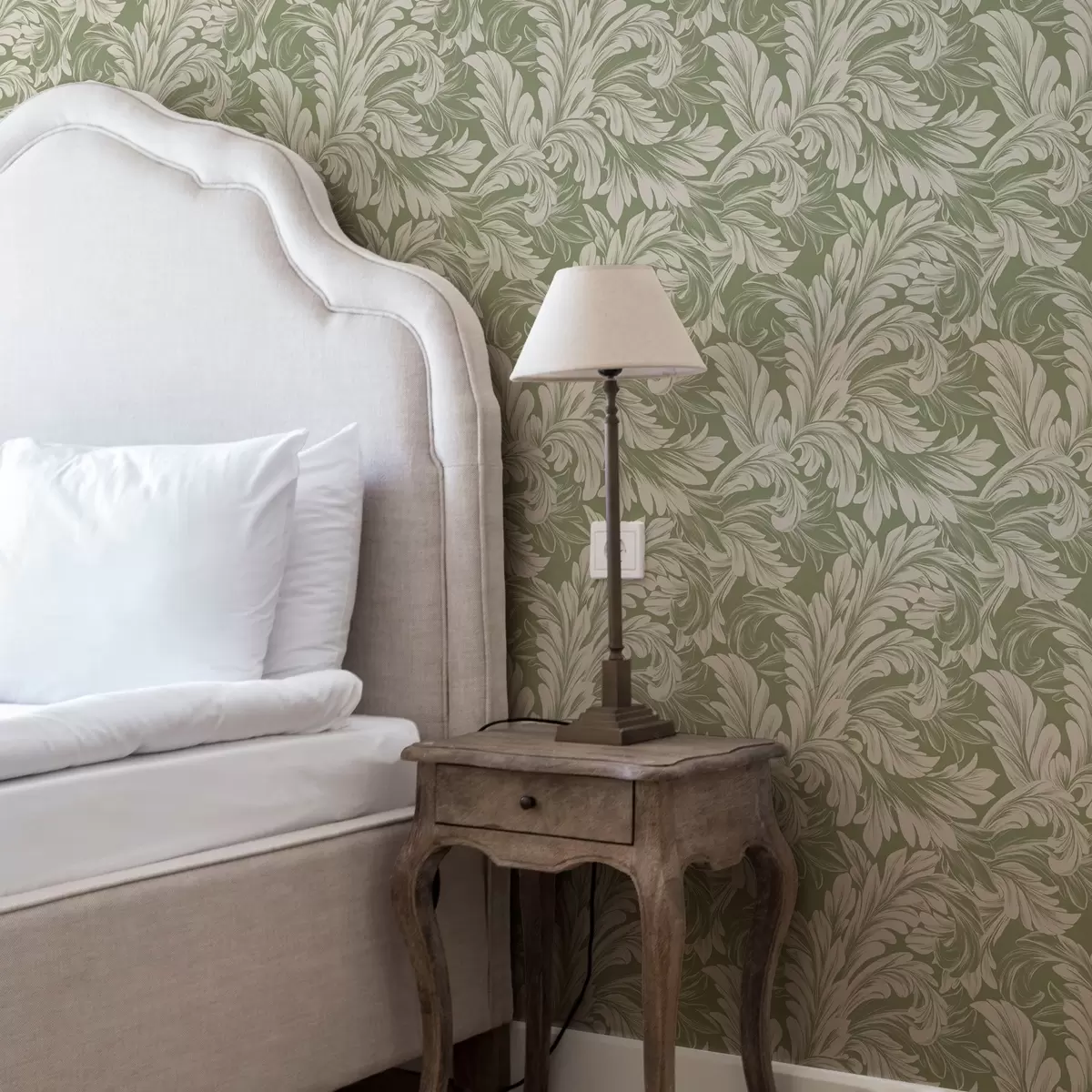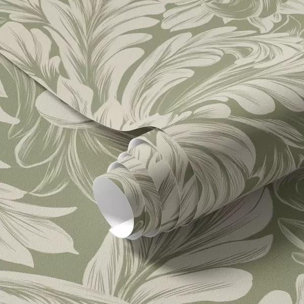 Tapeta Baroko s krémovými listy na zeleném pozadí Nr. a00135