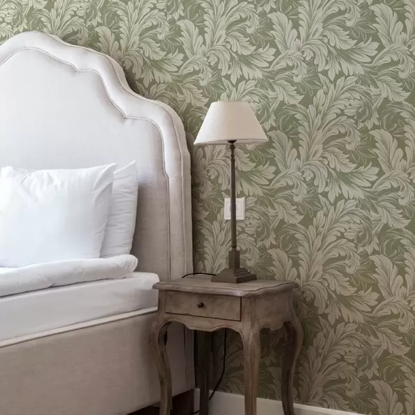 Tapeta Baroko s krémovými listy na zeleném pozadí Nr. a00135