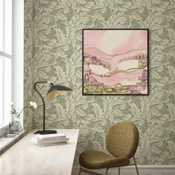 Tapeta Baroko s krémovými listy na zeleném pozadí Nr. a00135