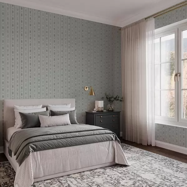 Tapeta Etnický motiv se vzory v šedé a mátové barvě Nr. a00138