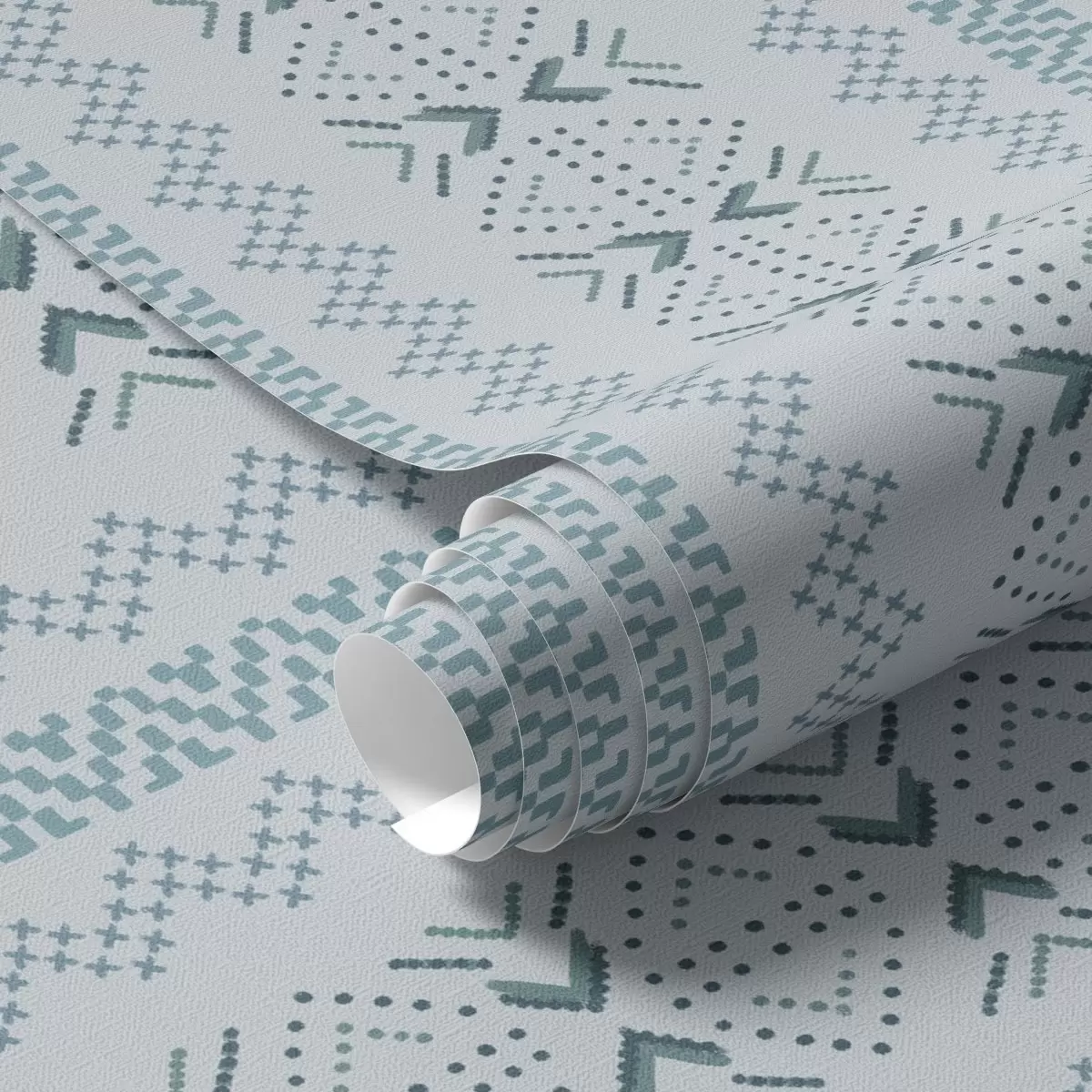 Tapeta Geometrie s ukrajinskou výšivkou na modrém pozadí Nr. a00139