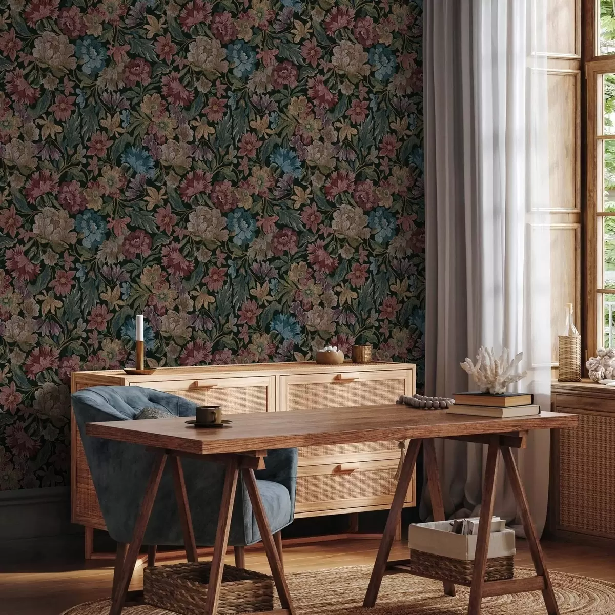 Tapeta Textura gobelínu s barevnými květy Nr. a00146