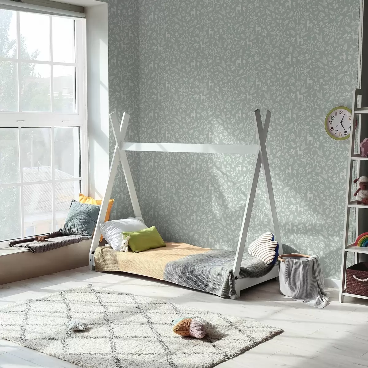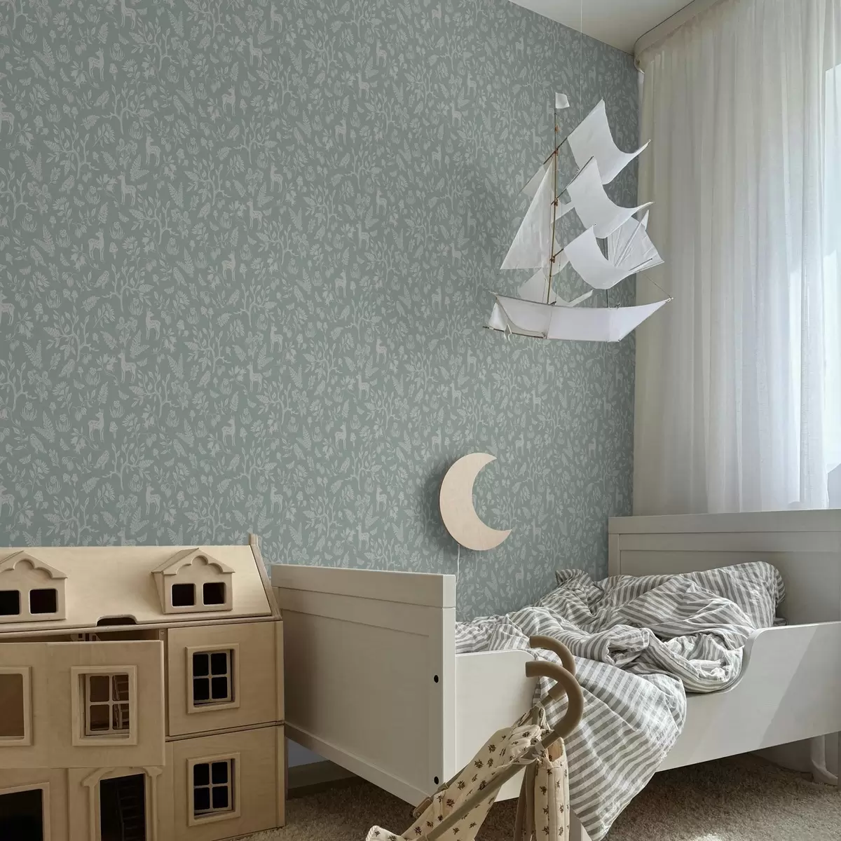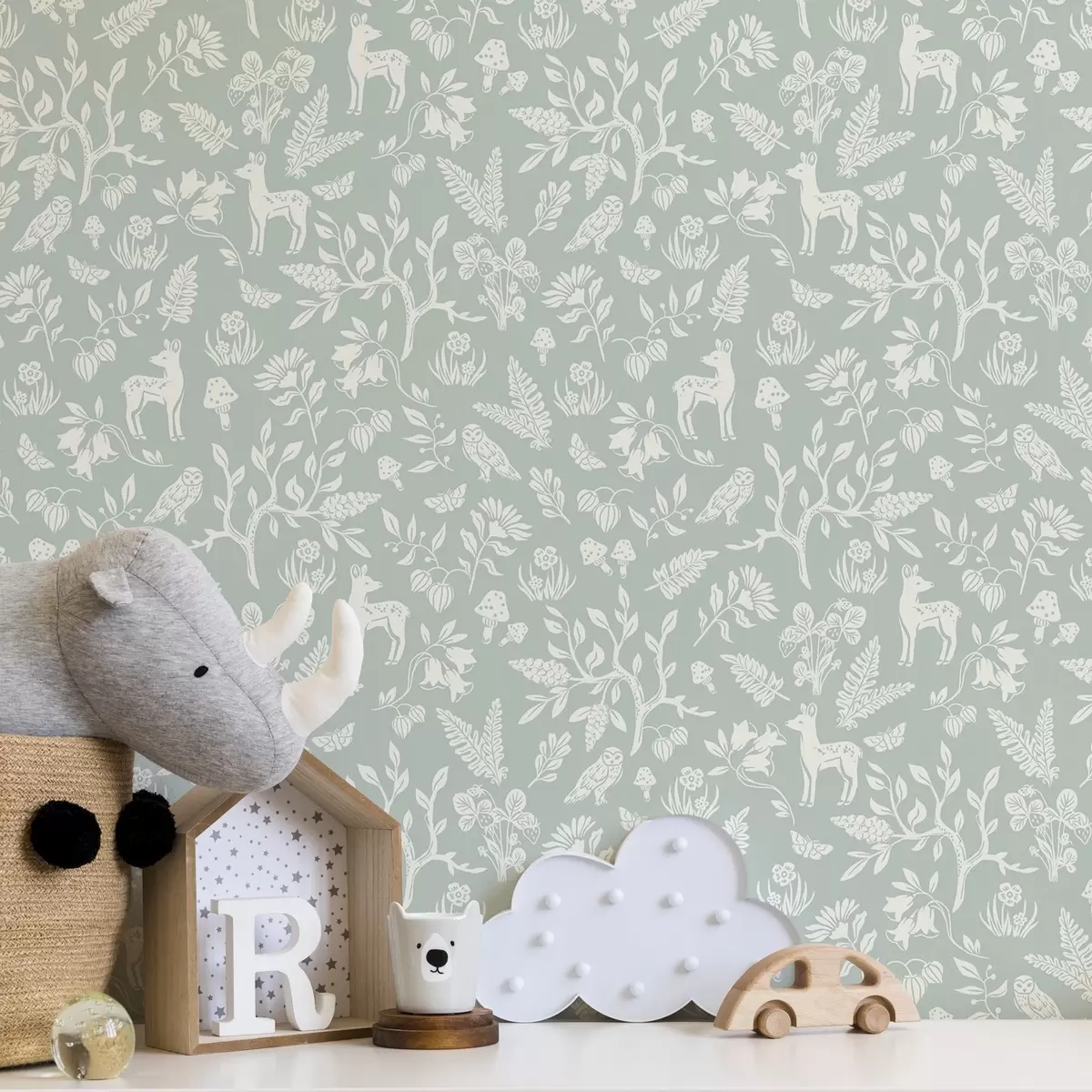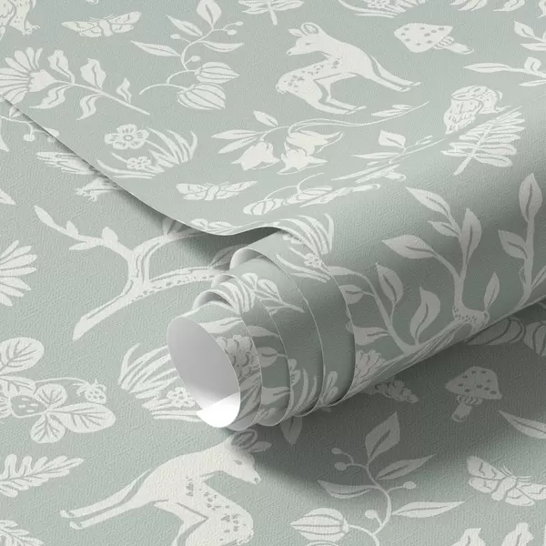Tapeta Skandinávská zvířata a rostliny na mátovém pozadí Nr. a00149