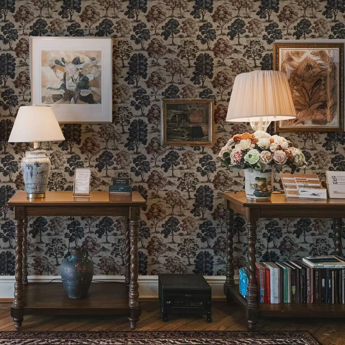 Tapeta Grafika se stromy na světlém lněném pozadí Nr. a00152