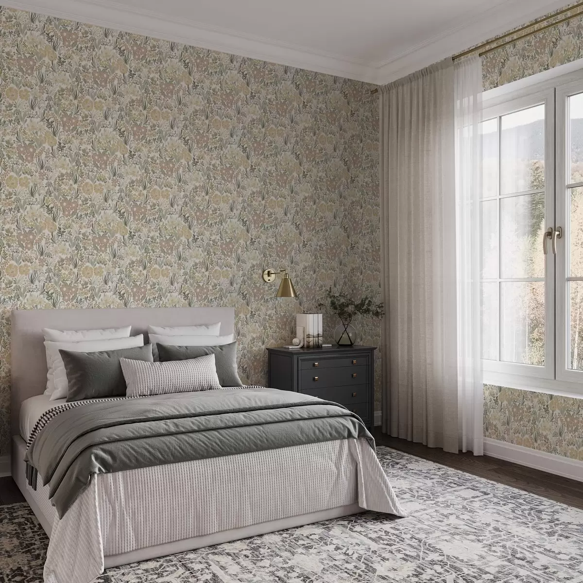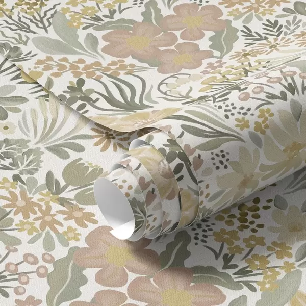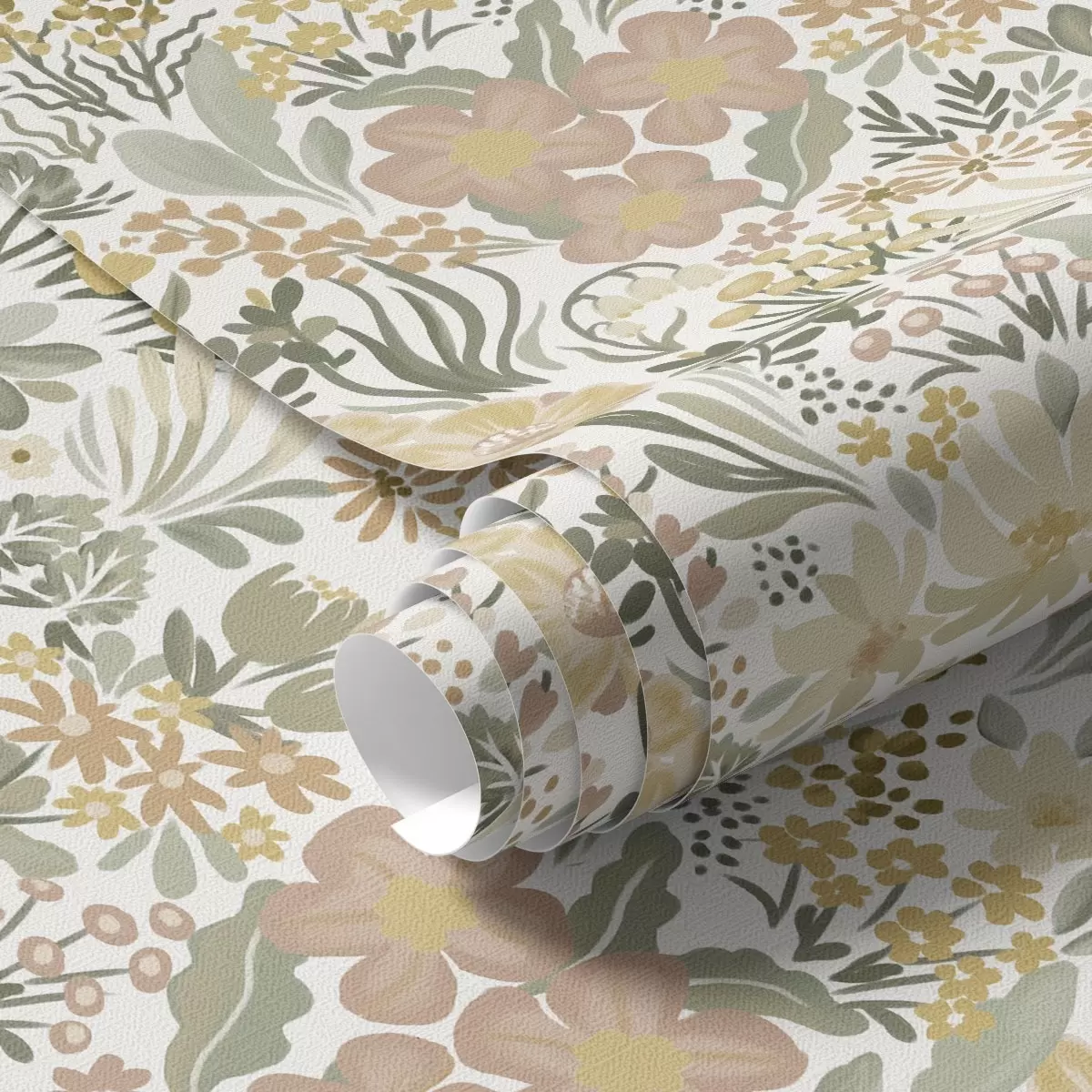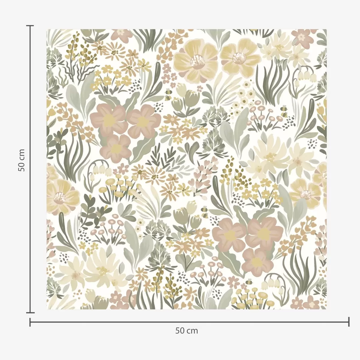 Tapeta Akvarelové divoké květiny na krémovém pozadí Nr. a00154
