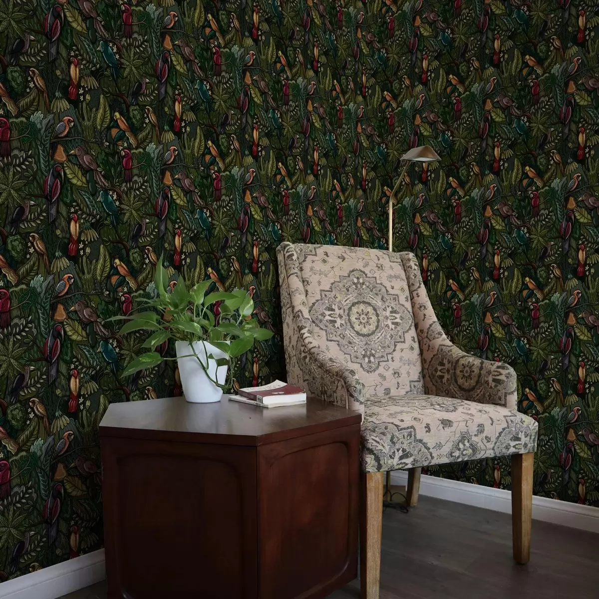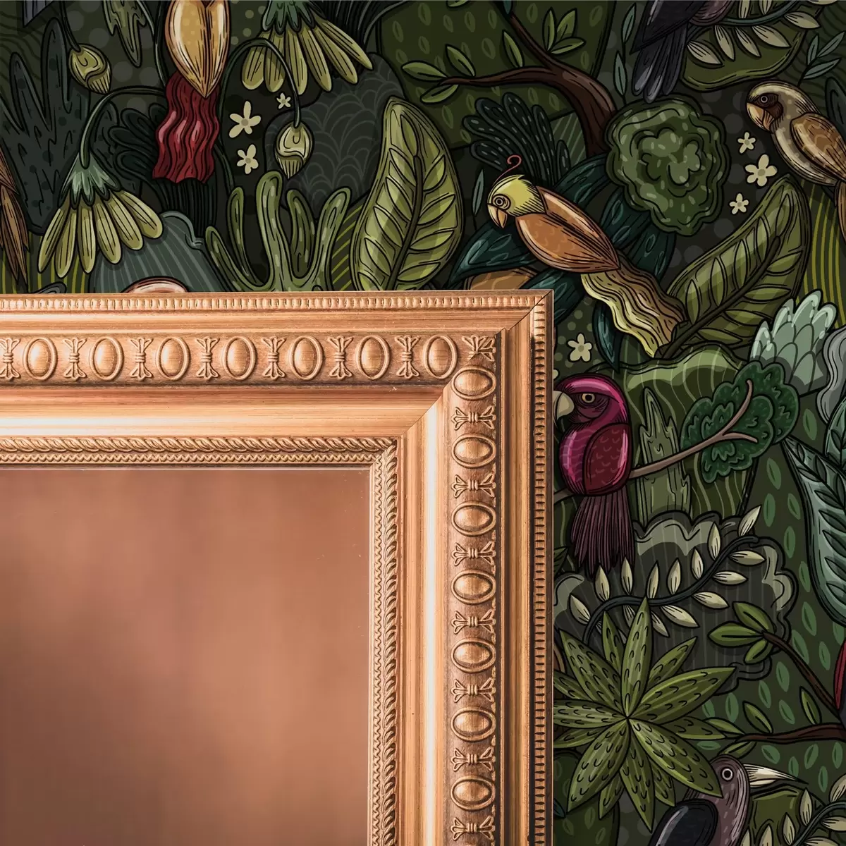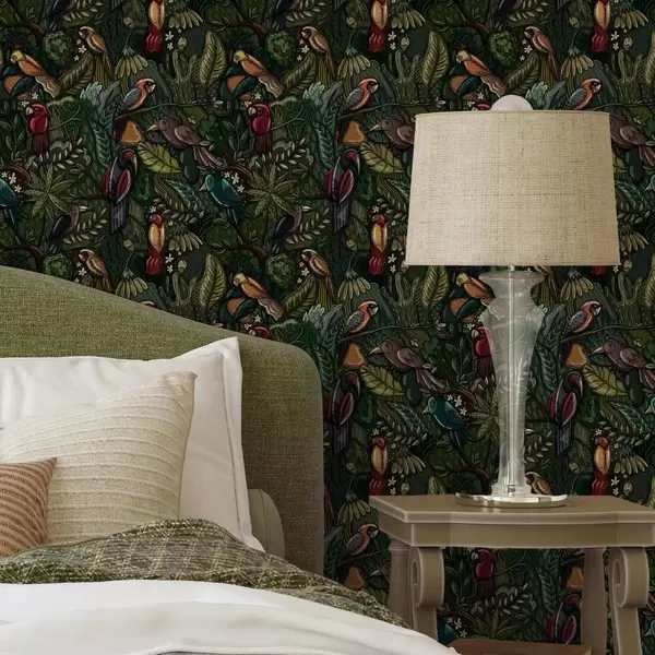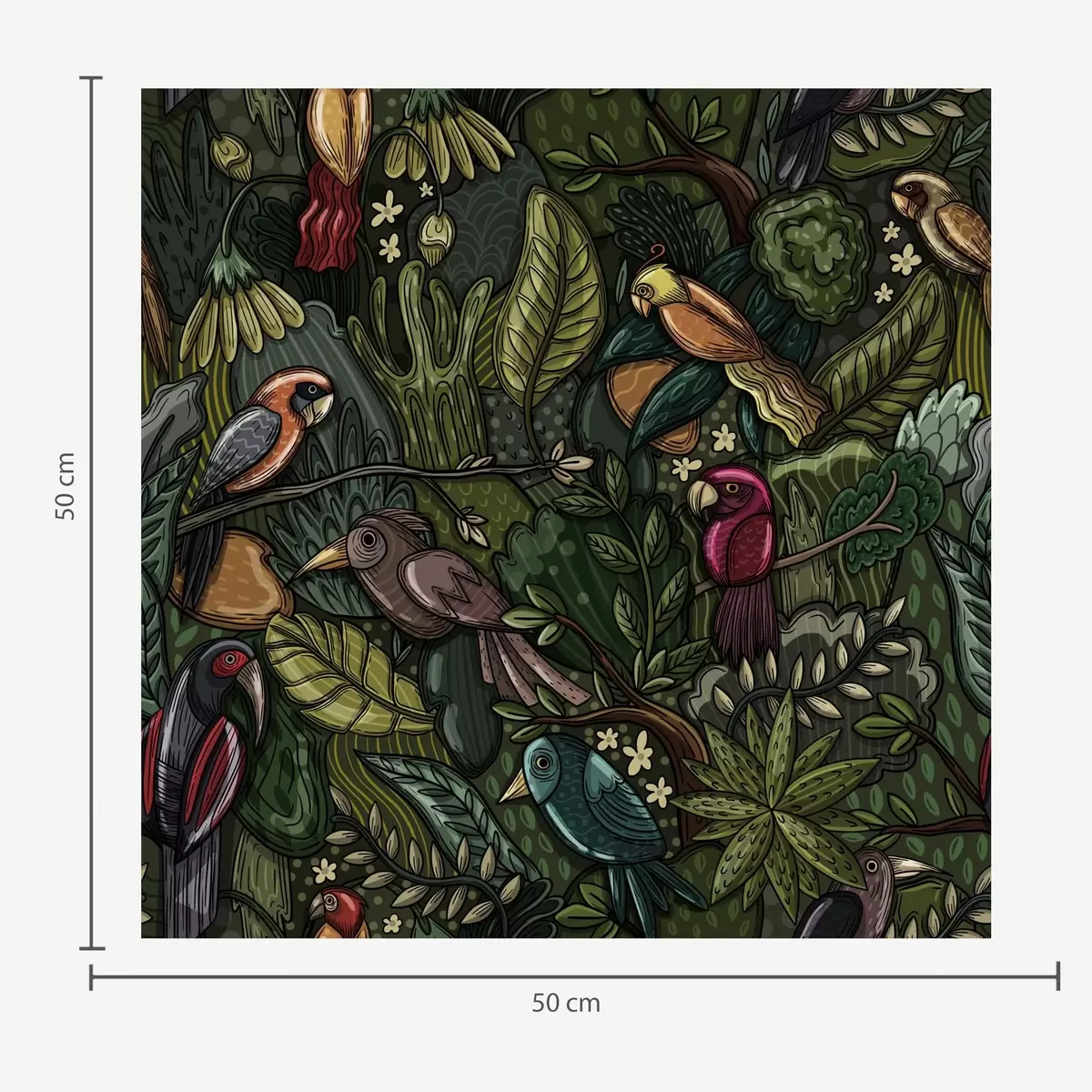 Tapeta Exotičtí ptáci v džungli ve stylu rytiny Nr. a00157