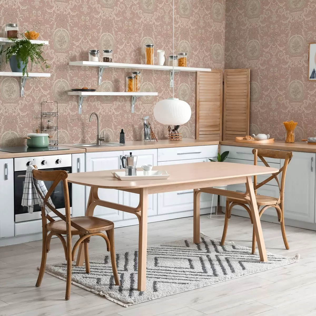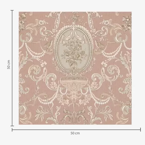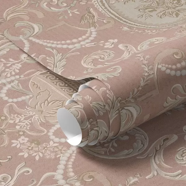Tapeta Barokní ornament s květinami na růžovém pozadí Nr. a00160