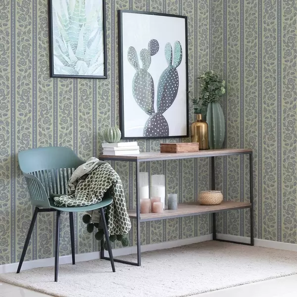 Tapeta Pruhovaný květinový ornament se žaludy v modrých a béžových tónech Nr. a00181
