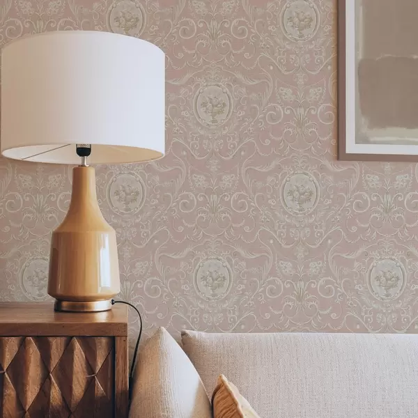 Tapeta Růžový klasický vzor s medailonky a květinami Nr. a00185