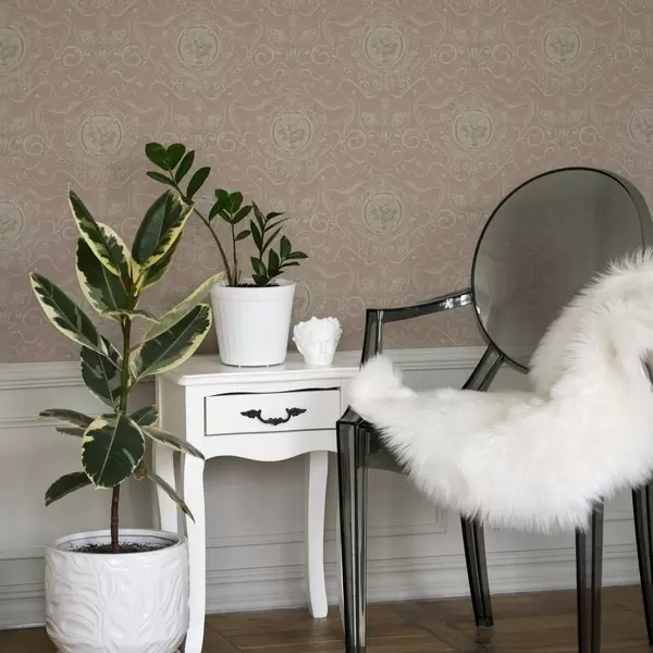 Tapeta Růžový klasický vzor s medailonky a květinami Nr. a00185
