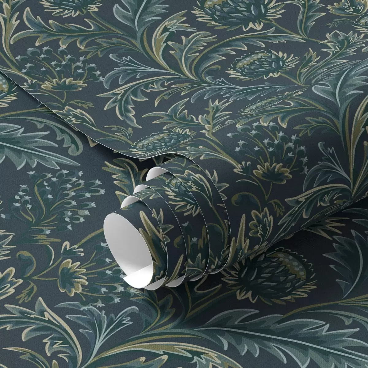 Tapeta Tmavě zelený květinový vzor s artyčoky Nr. a00186