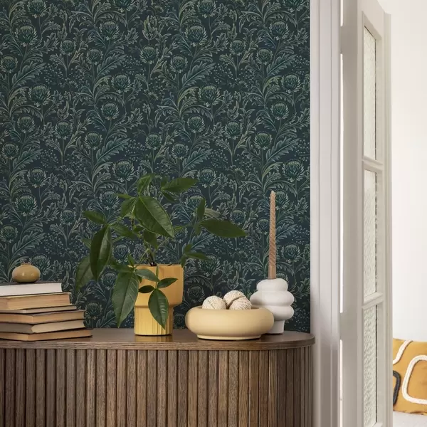 Tapeta Tmavě zelený květinový vzor s artyčoky Nr. a00186