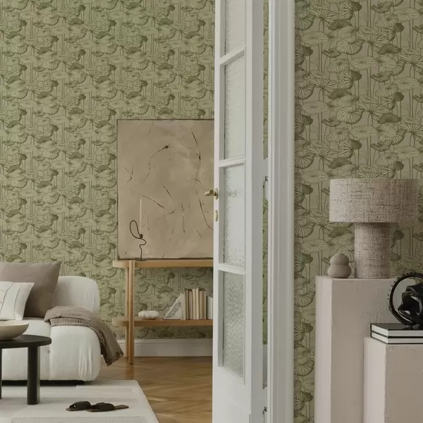 Tapeta Grafické lotosové listy v retro stylu na béžovém pozadí Nr. a00188
