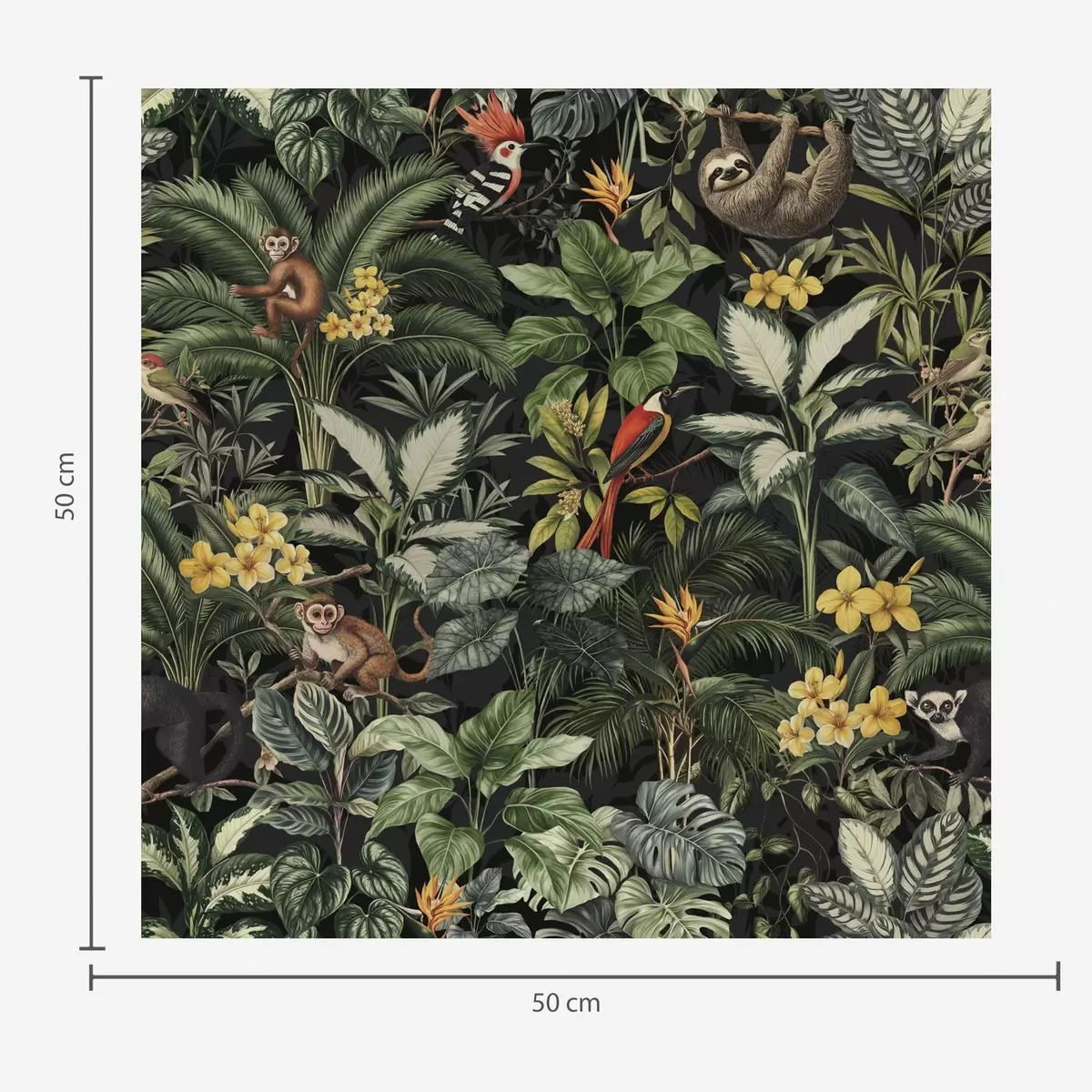 Tapeta Tropická džungle s opicemi, ptáky a hustým listovím Nr. a00191