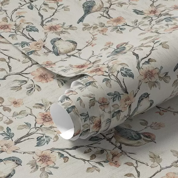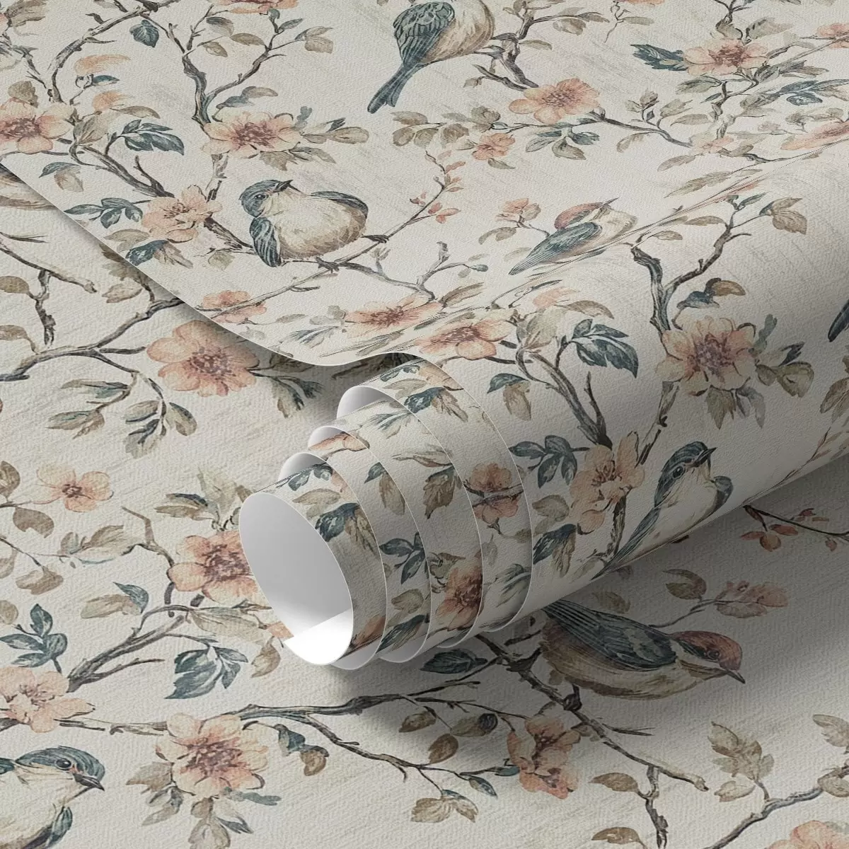 Tapeta Ptáci na větvích s květinami v retro akvarelovém stylu Nr. a00197