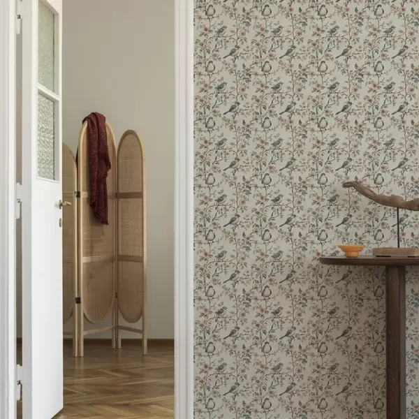Tapeta Ptáci na větvích s květinami v retro akvarelovém stylu Nr. a00197