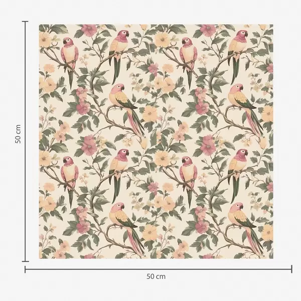 Tapeta Tropičtí ptáci na kvetoucích větvích v pastelových barvách Nr. a00199