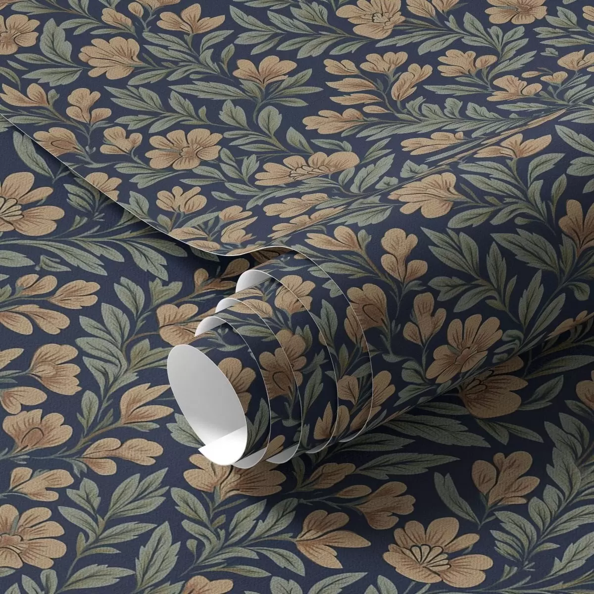 Tapeta Oranžové květiny na tmavě modrém pozadí ve vintage stylu Nr. a00200