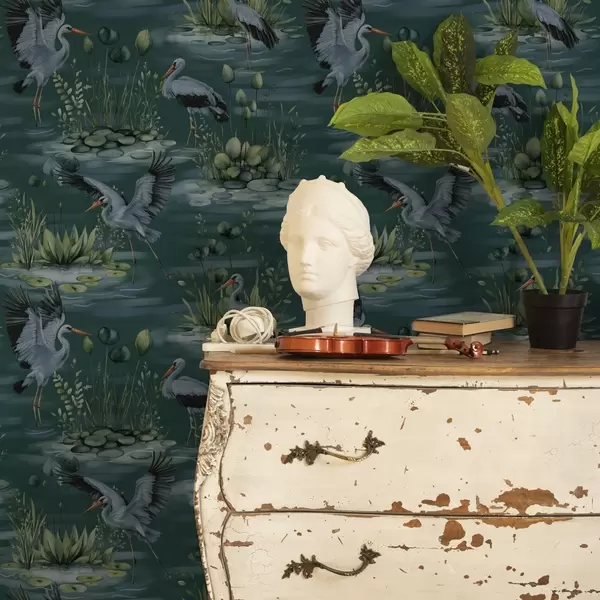 Tapeta Scény s volavkami na pozadí rybníků a leknínů Nr. a00202
