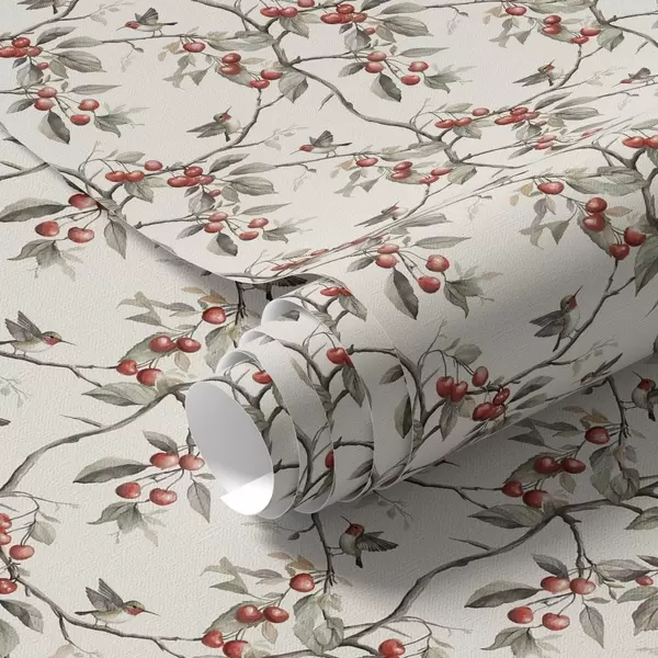 Tapeta Ptáci mezi větvemi třešní s červenými bobulemi Nr. a00206