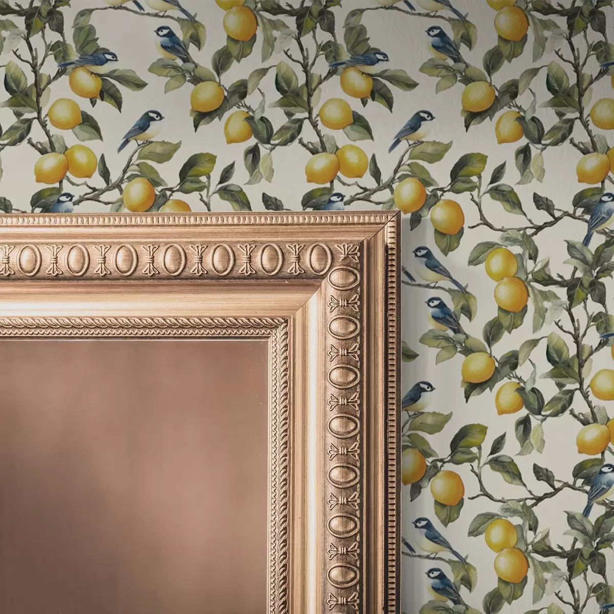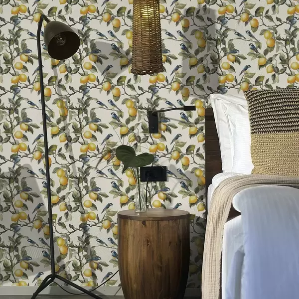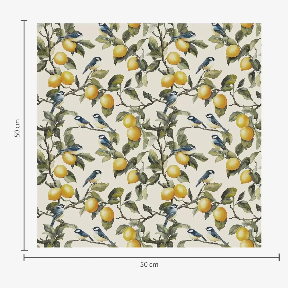 Tapeta Ptáci a citrony na větvích, akvarelová botanická kresba Nr. a00207
