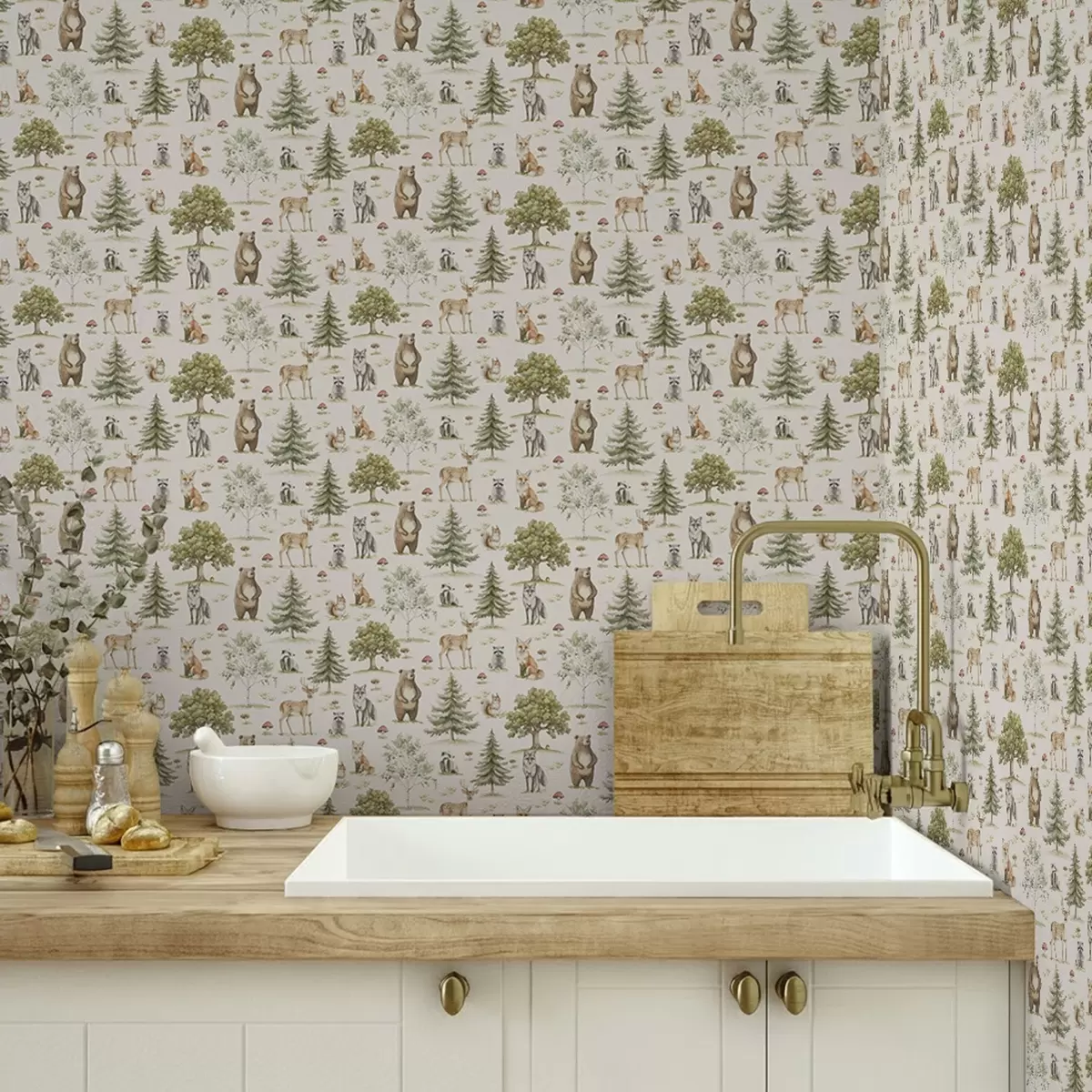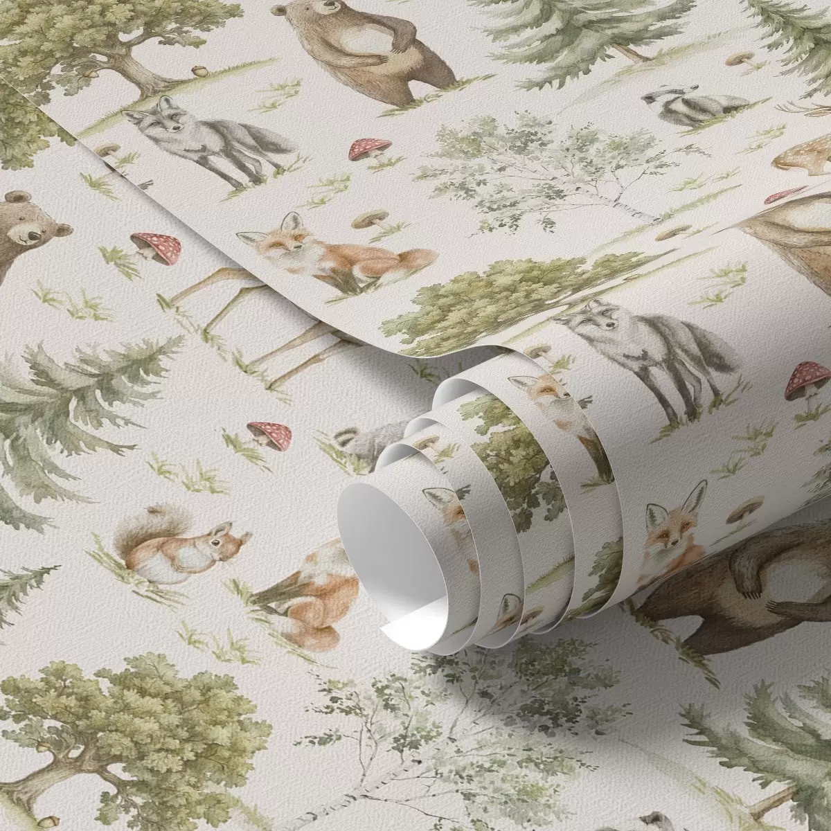 Tapeta Lesní zvířata v jemném akvarelovém stylu, stromy a houby Nr. a00212
