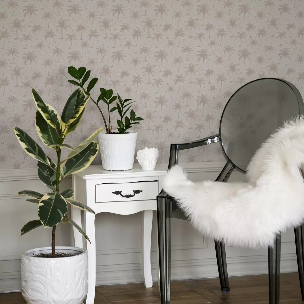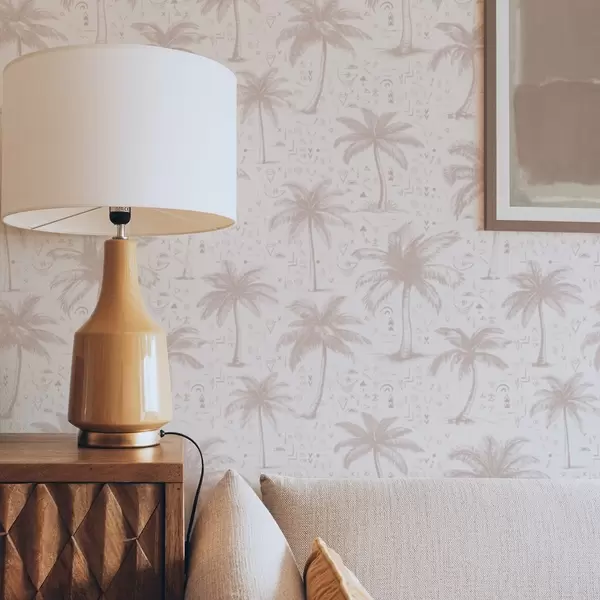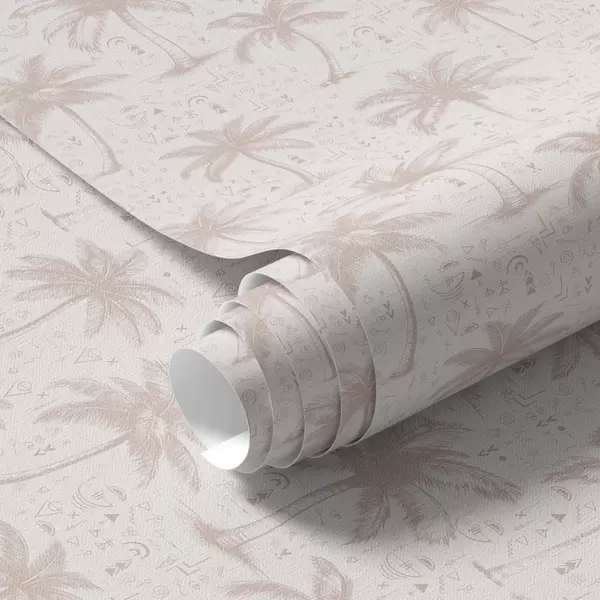 Tapeta Palmy s etnickými symboly, pastelově růžový tón Nr. a00213