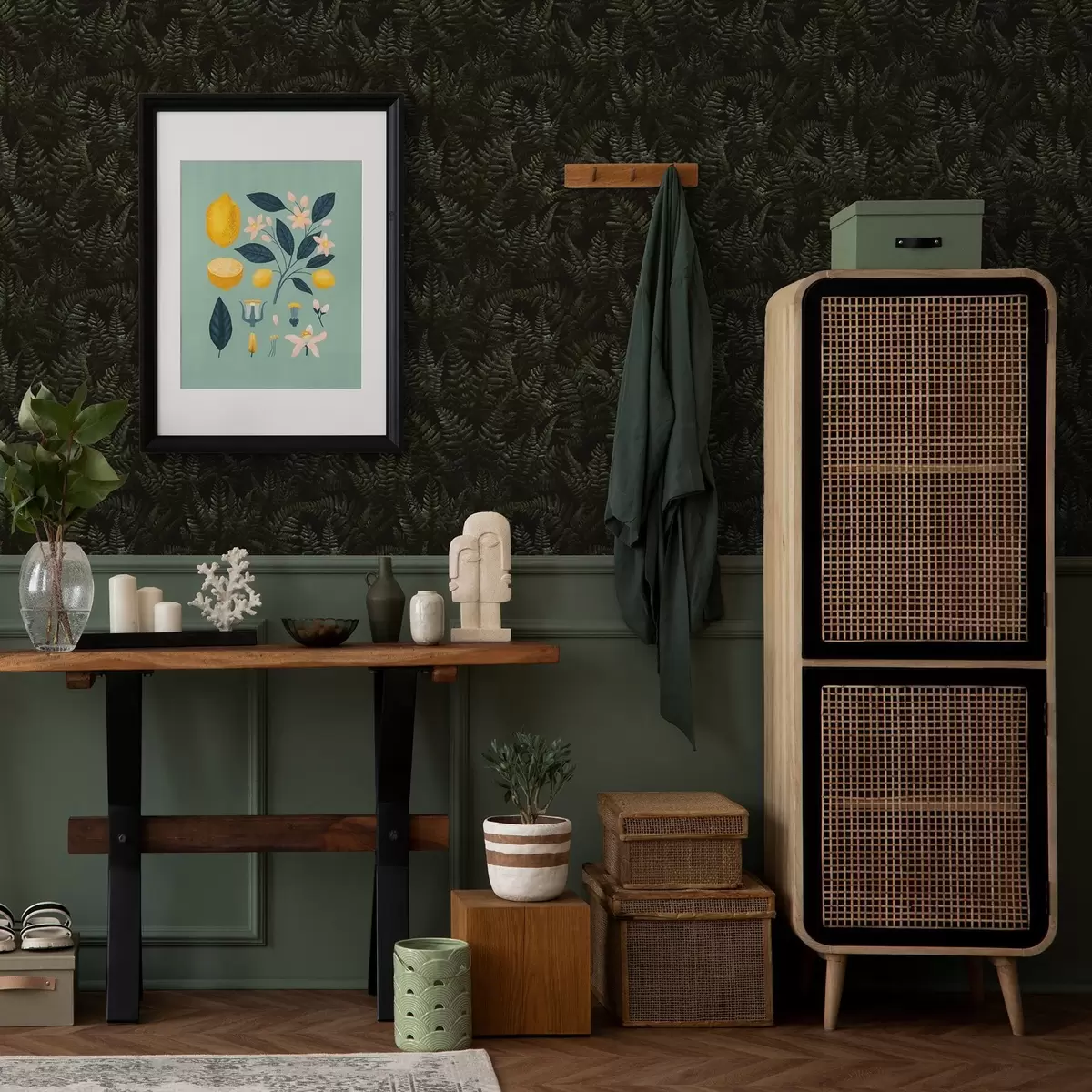 Tapeta Tmavé kapradí, lesní ornament, noční barvy Nr. a00214