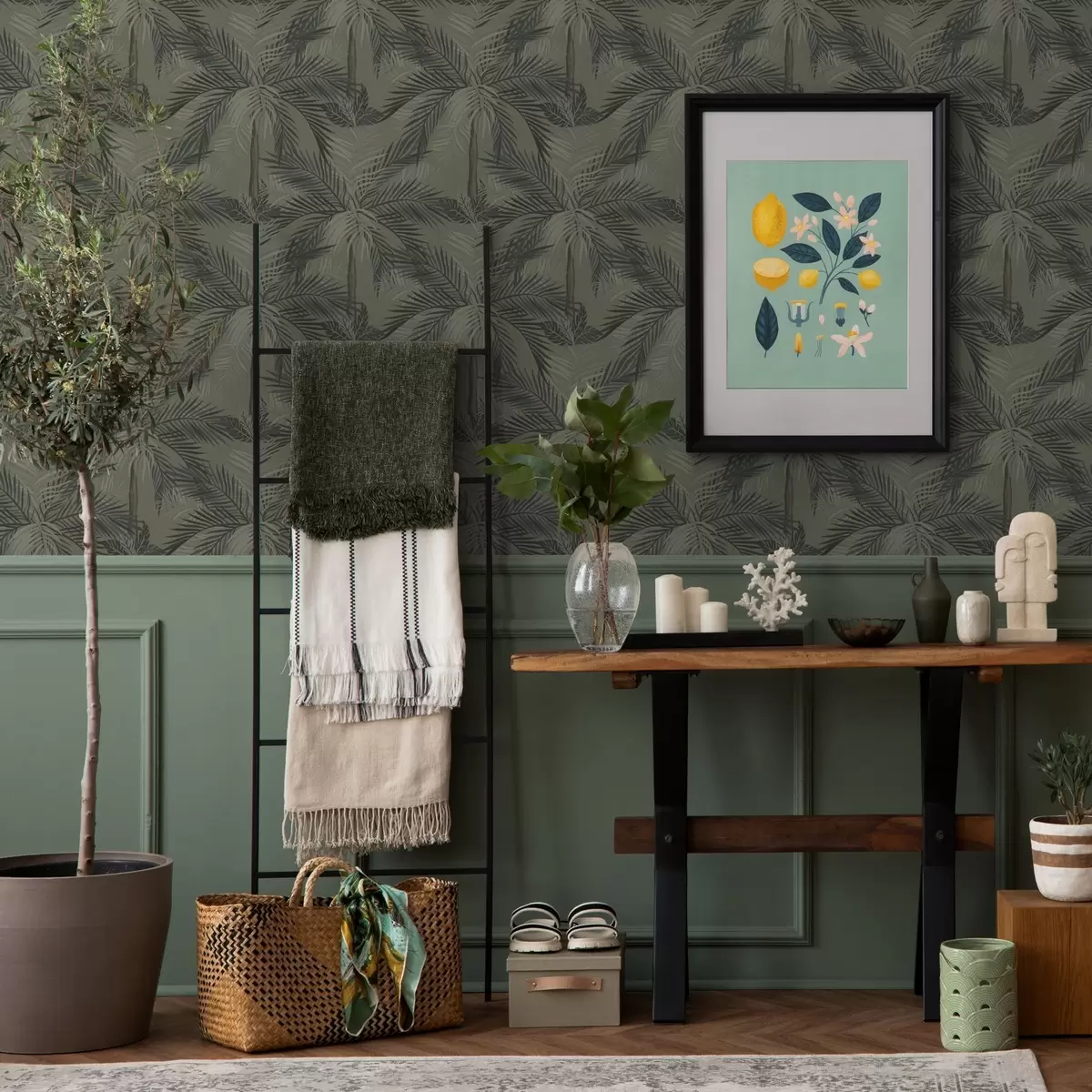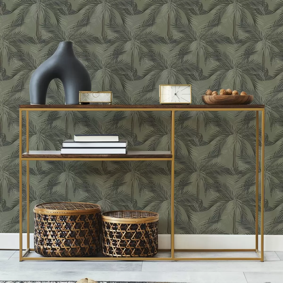 Tapeta Palmové listy na olivovém pozadí, džungle, tropy Nr. a00217