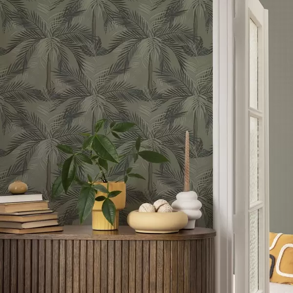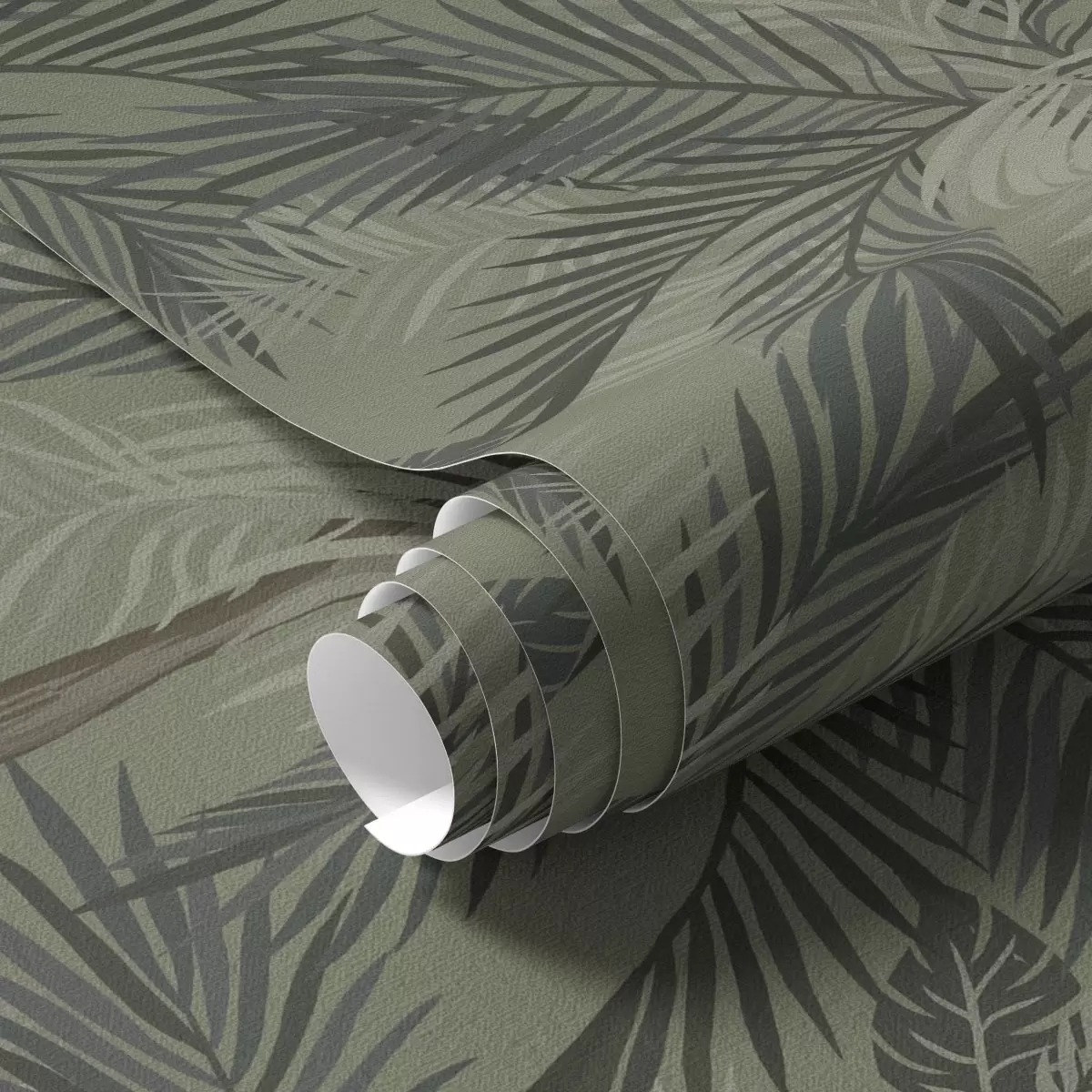 Tapeta Palmové listy na olivovém pozadí, džungle, tropy Nr. a00217