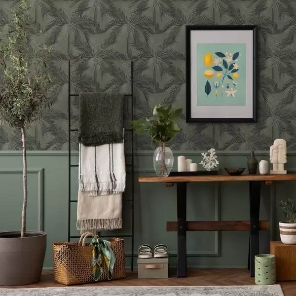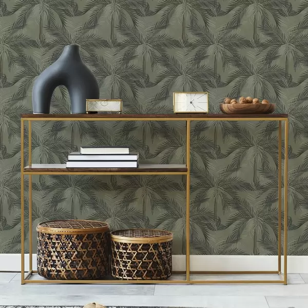 Tapeta Palmové listy na olivovém pozadí, džungle, tropy Nr. a00217