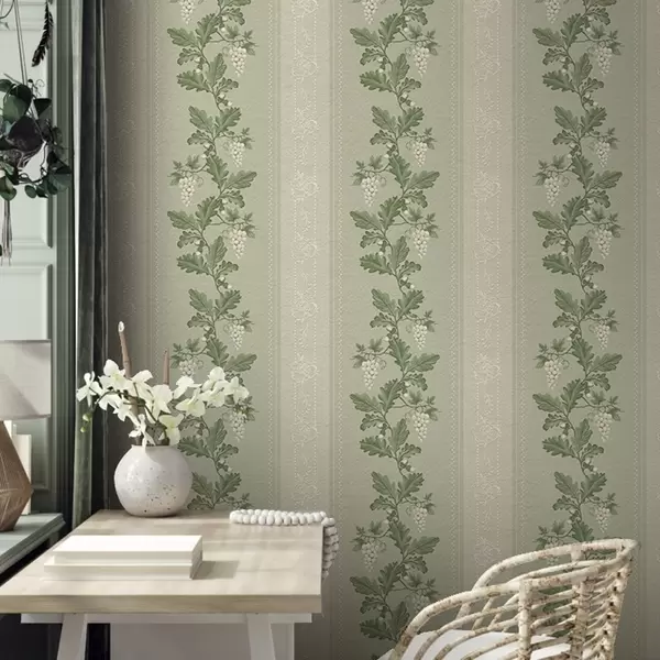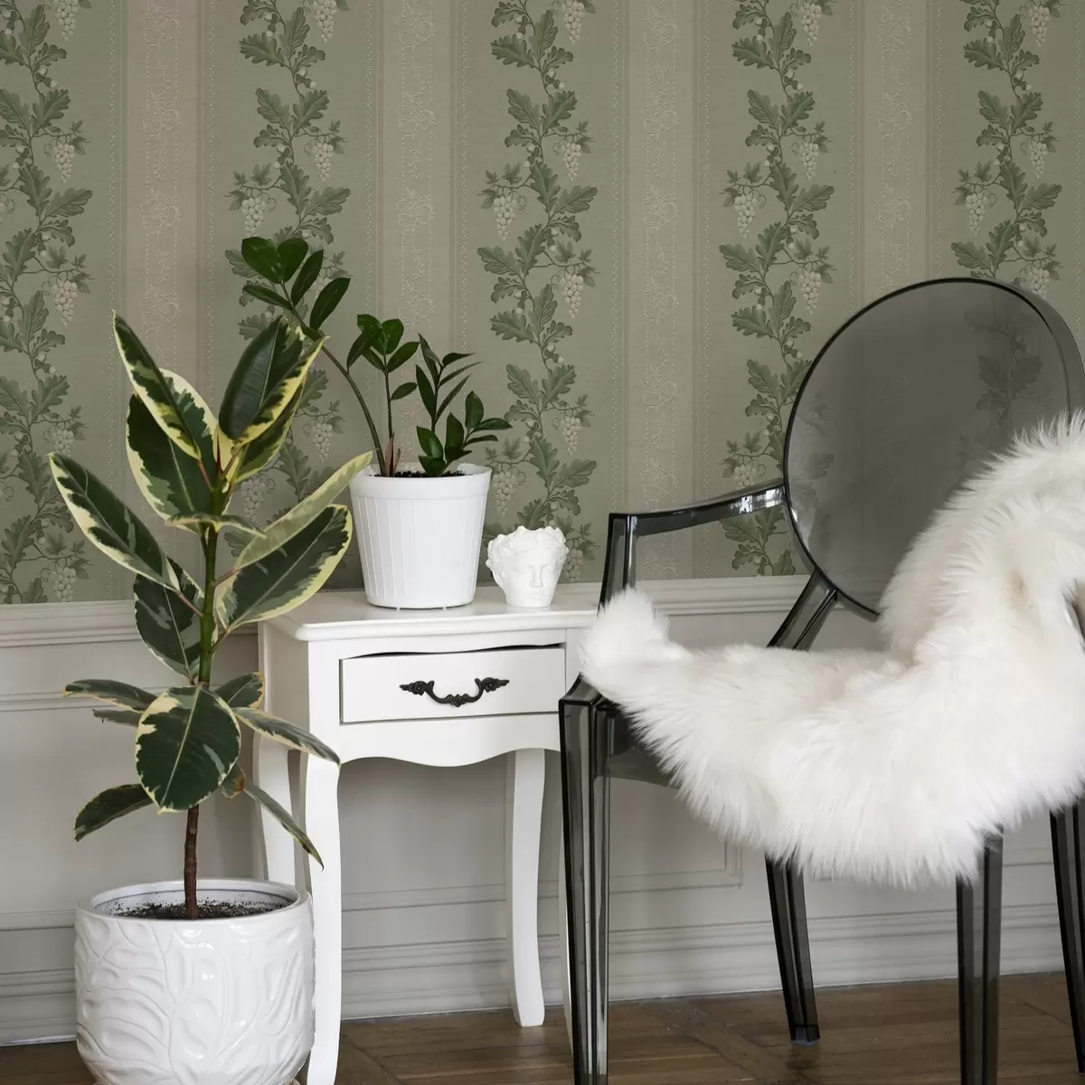 Tapeta Hroznové hrozny a krajka, zelený klasický vzor Nr. a00223