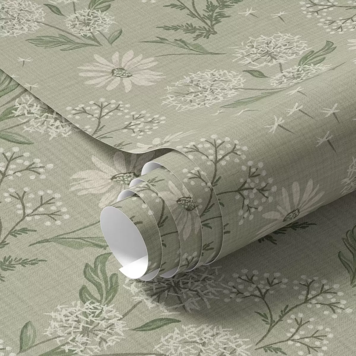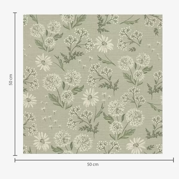 Tapeta Pampelišky a sedmikrásky, botanický vzor na šedozeleném pozadí Nr. a00224