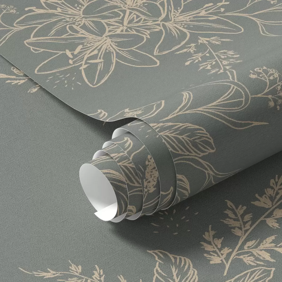 Tapeta Obrysové květiny na modrošedém pozadí, elegantní botanický vzor Nr. a00226