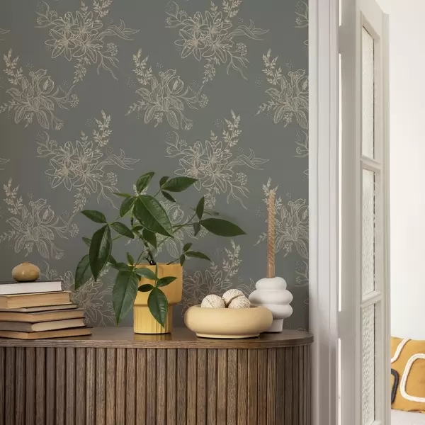 Tapeta Obrysové květiny na modrošedém pozadí, elegantní botanický vzor Nr. a00226