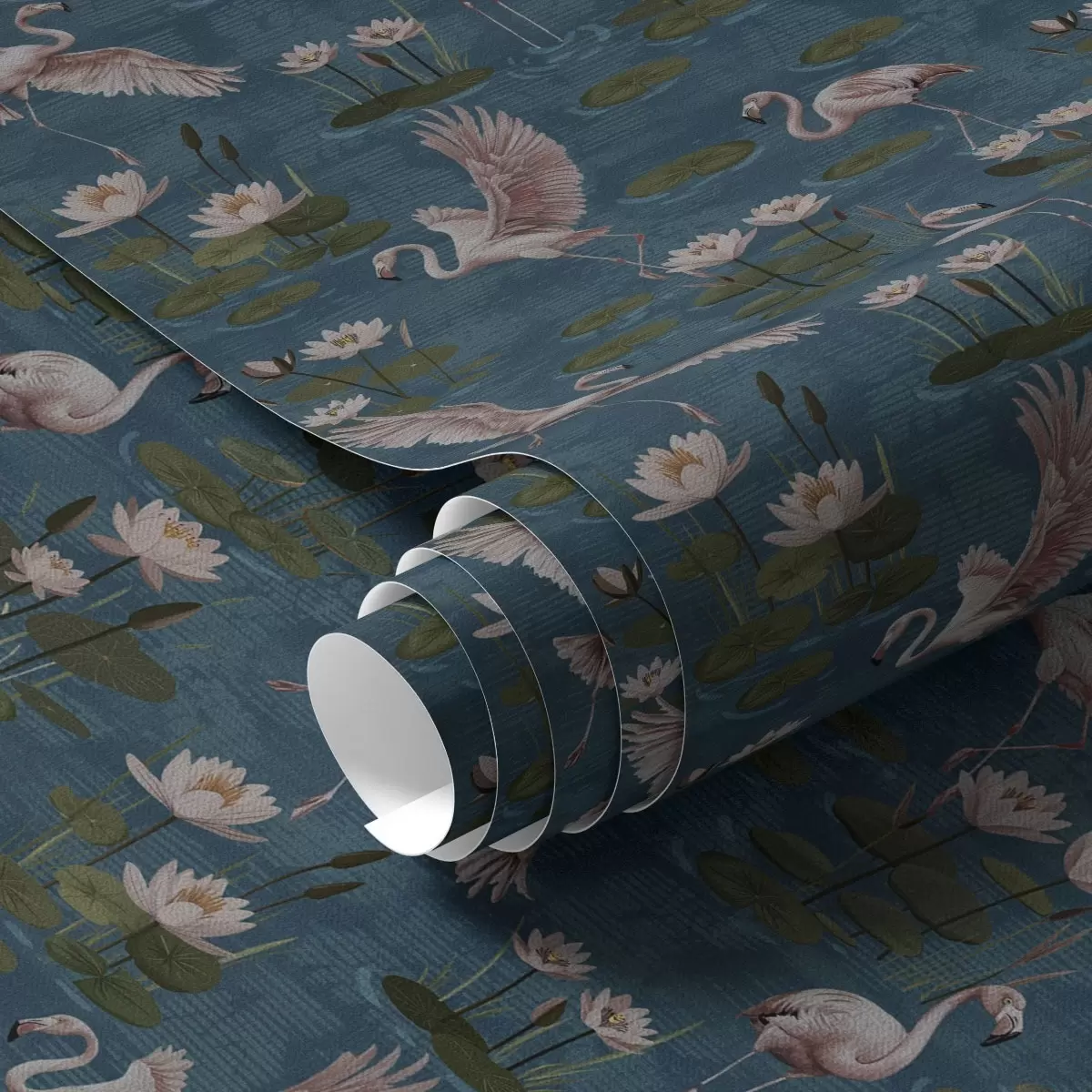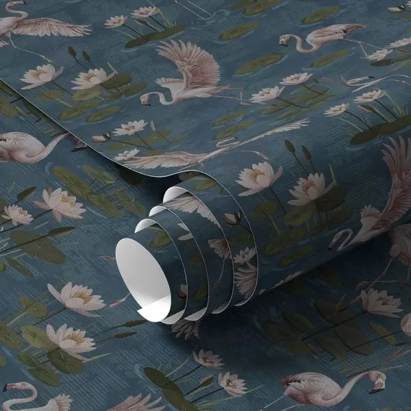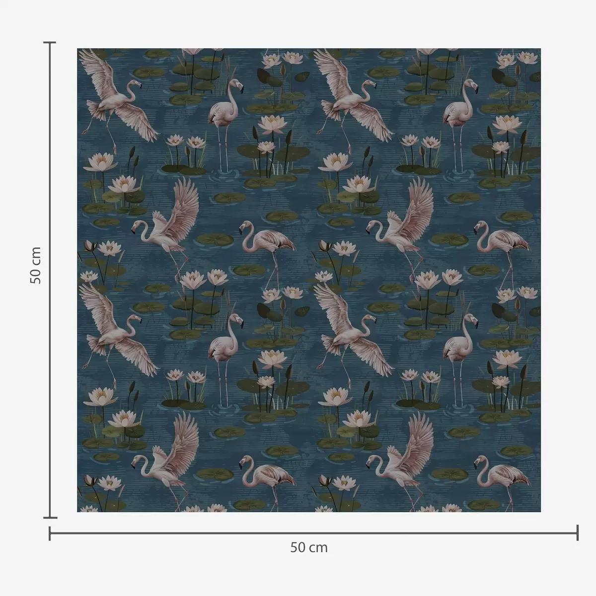 Tapeta Plameňák mezi lekníny, tropická scéna na tmavě modrém pozadí Nr. a00237