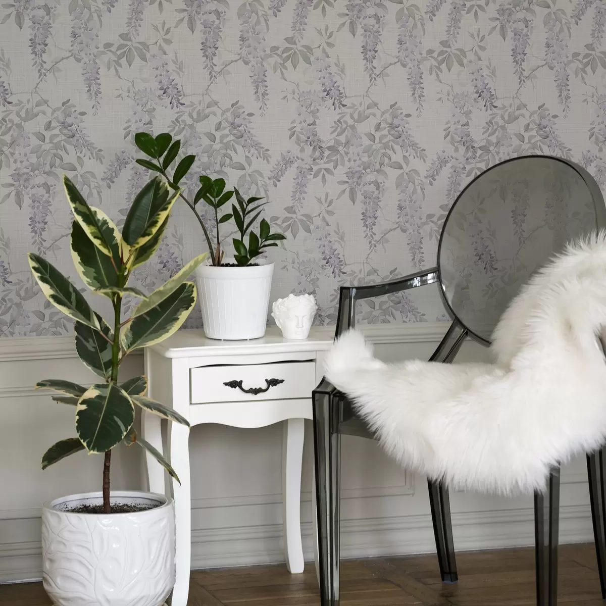 Tapeta Šeříková vistárie na bílém pozadí, akvarelový styl Nr. a00239