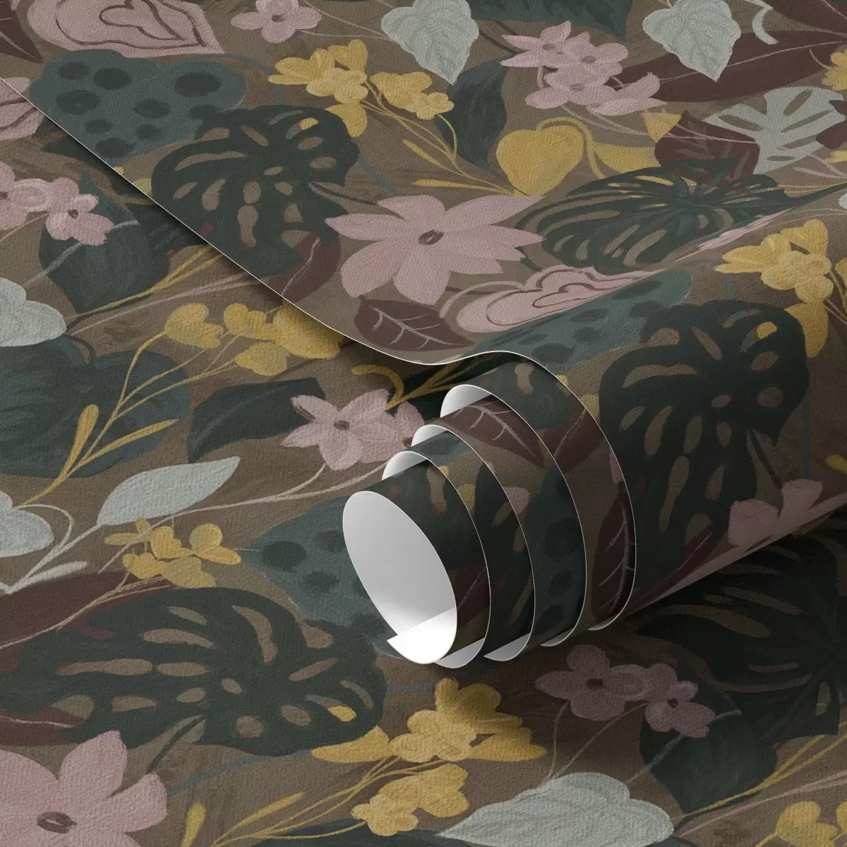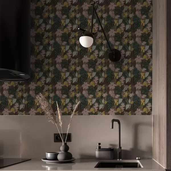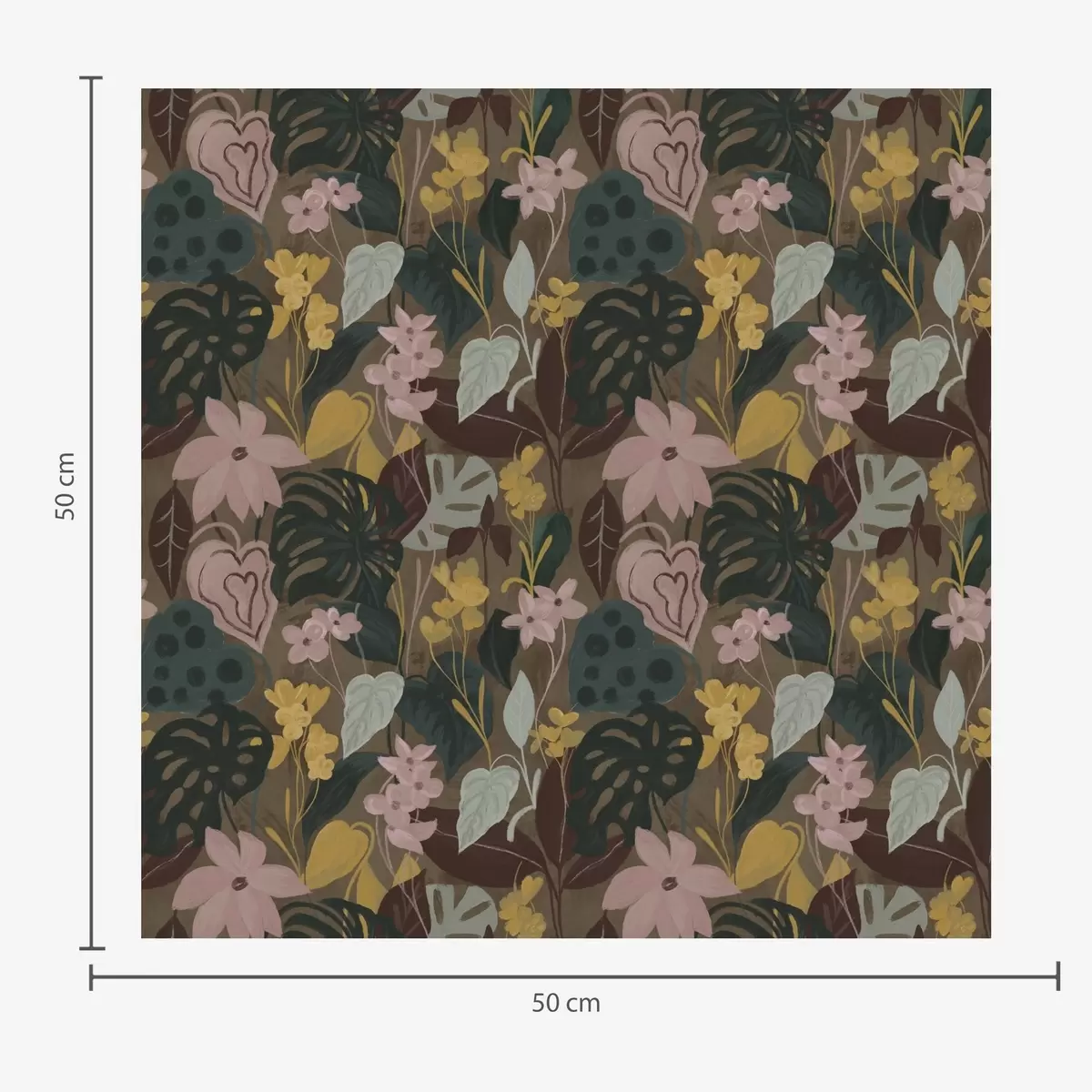 Tapeta Tmavé tropické listy a květy v husté malbě husté malby Nr. a00244