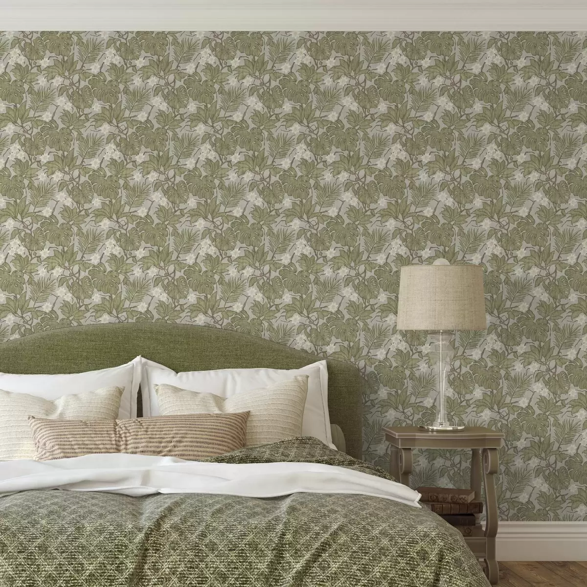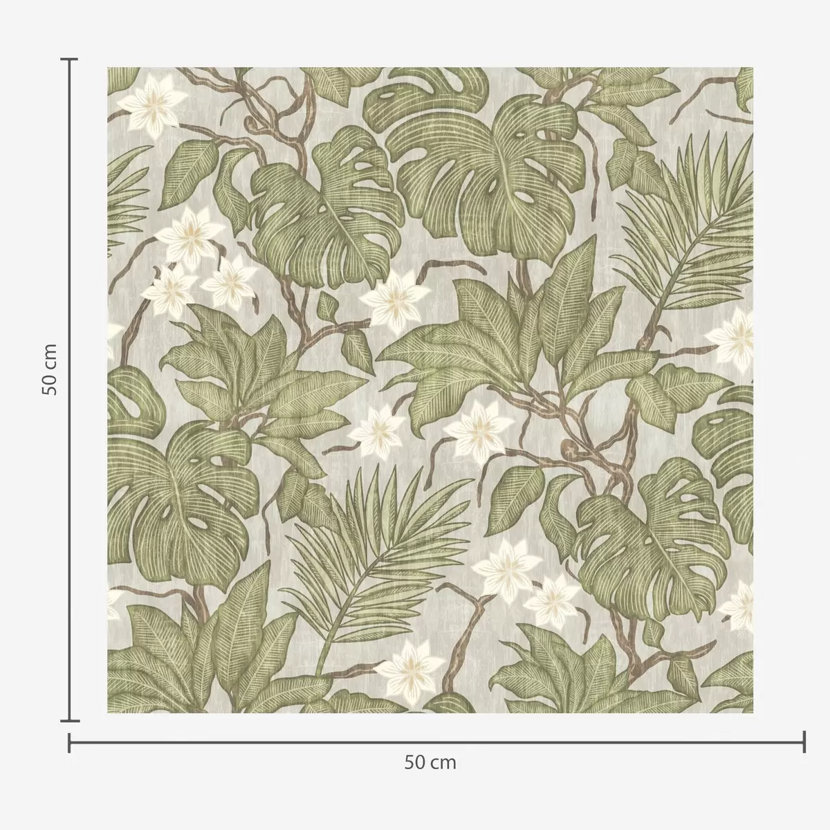 Tapeta Listy a květy tropické monstery na šedém pozadí Nr. a00249
